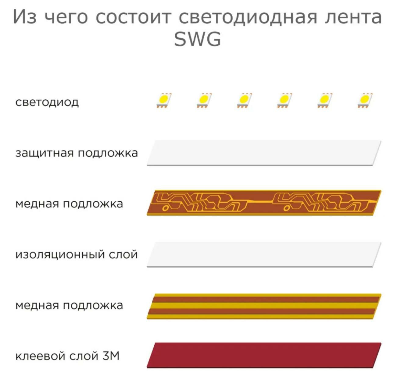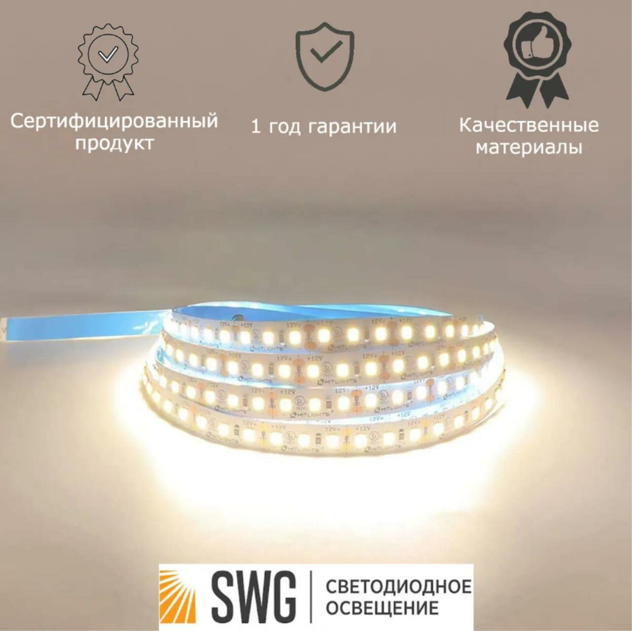 Лента светодиодная SWG 12В 9.6Вт IP20 5 м цвет нейтральный белый интересное: