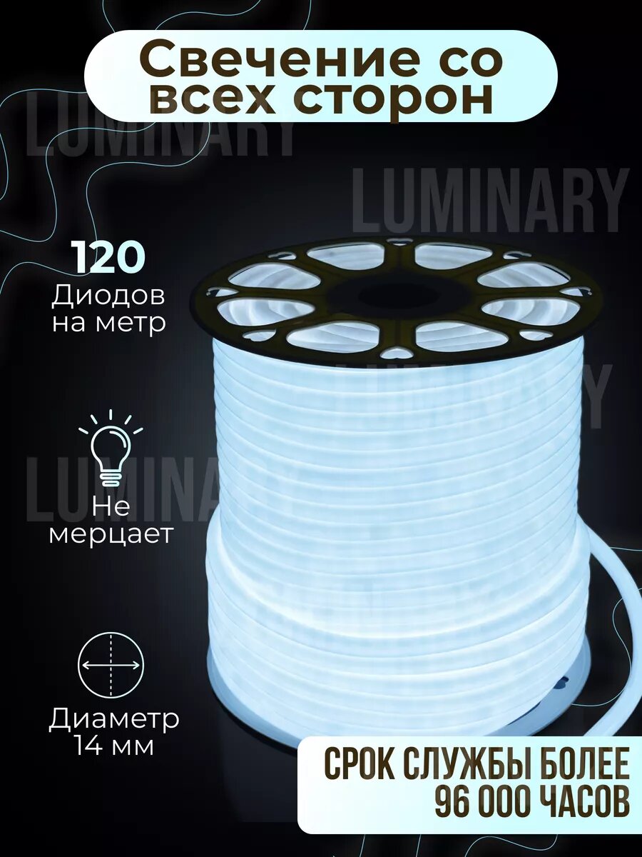 Гибкий неон 360 ° светодиодная лента 10 метров, подсветка, LED лента, цвет белый