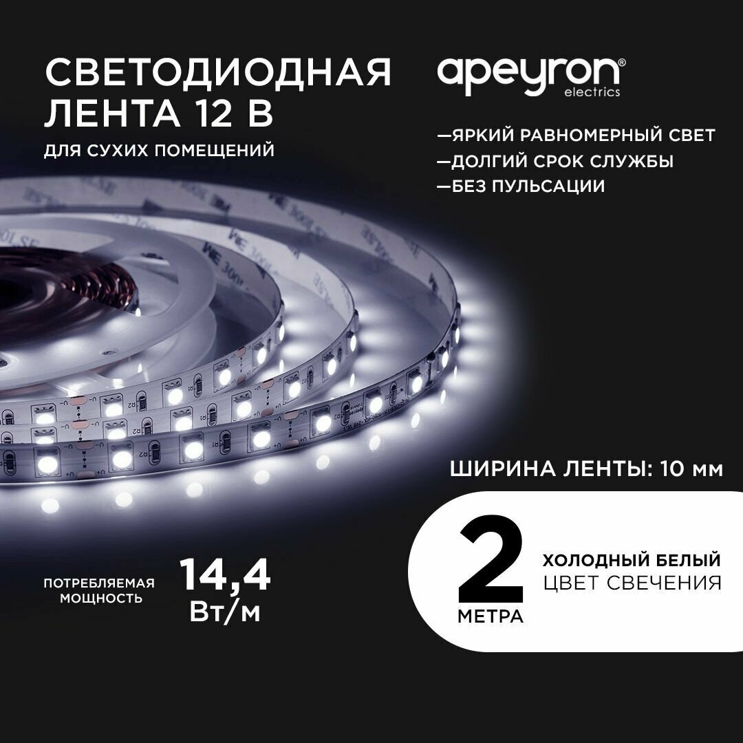 228BL Светодиодная лента 12В, 14,4Вт м, smd5050, 60д м, IP20, 700Лм м, ширина подложки 10мм, 2м, интересное: