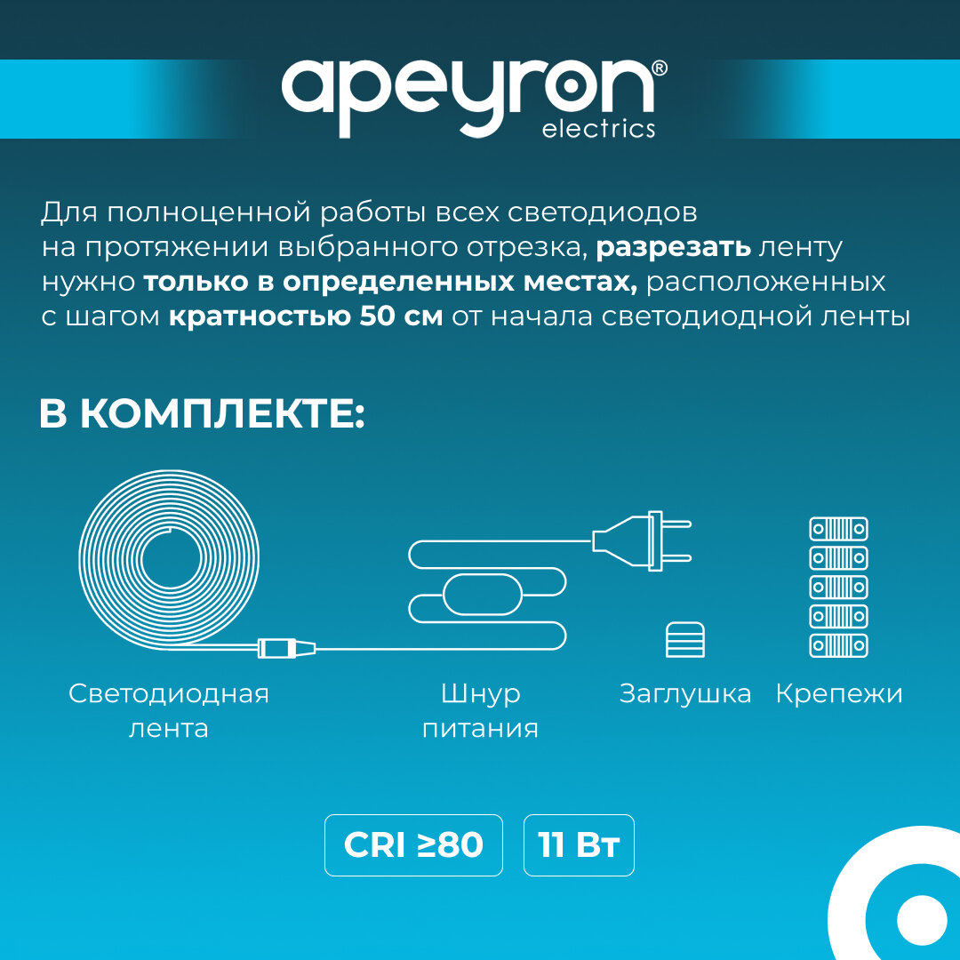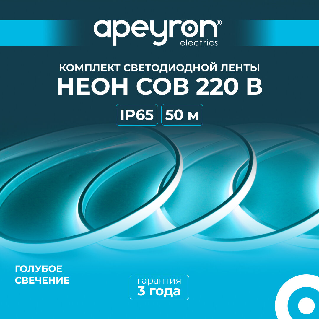 Комплект светодиодной ленты Apeyron 10-107 неон COB с аксессуарами, 220В, цвет свечения голубой, 11Вт/м, IP65, длина 5м интересное: