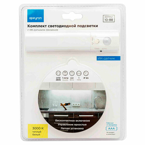 Купить Интерьерная светодиодная подсветка Apeyron лента 6В 2,4Вт/м PIR-сенсор (1шт)