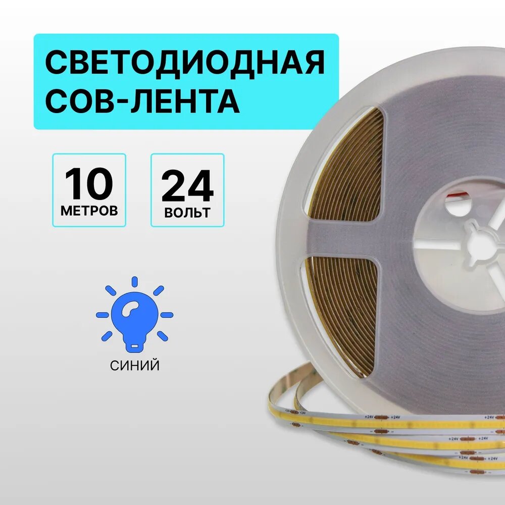 Купить Светодиодная лента COB, 10 метров, 24В, 480LED/m, синий