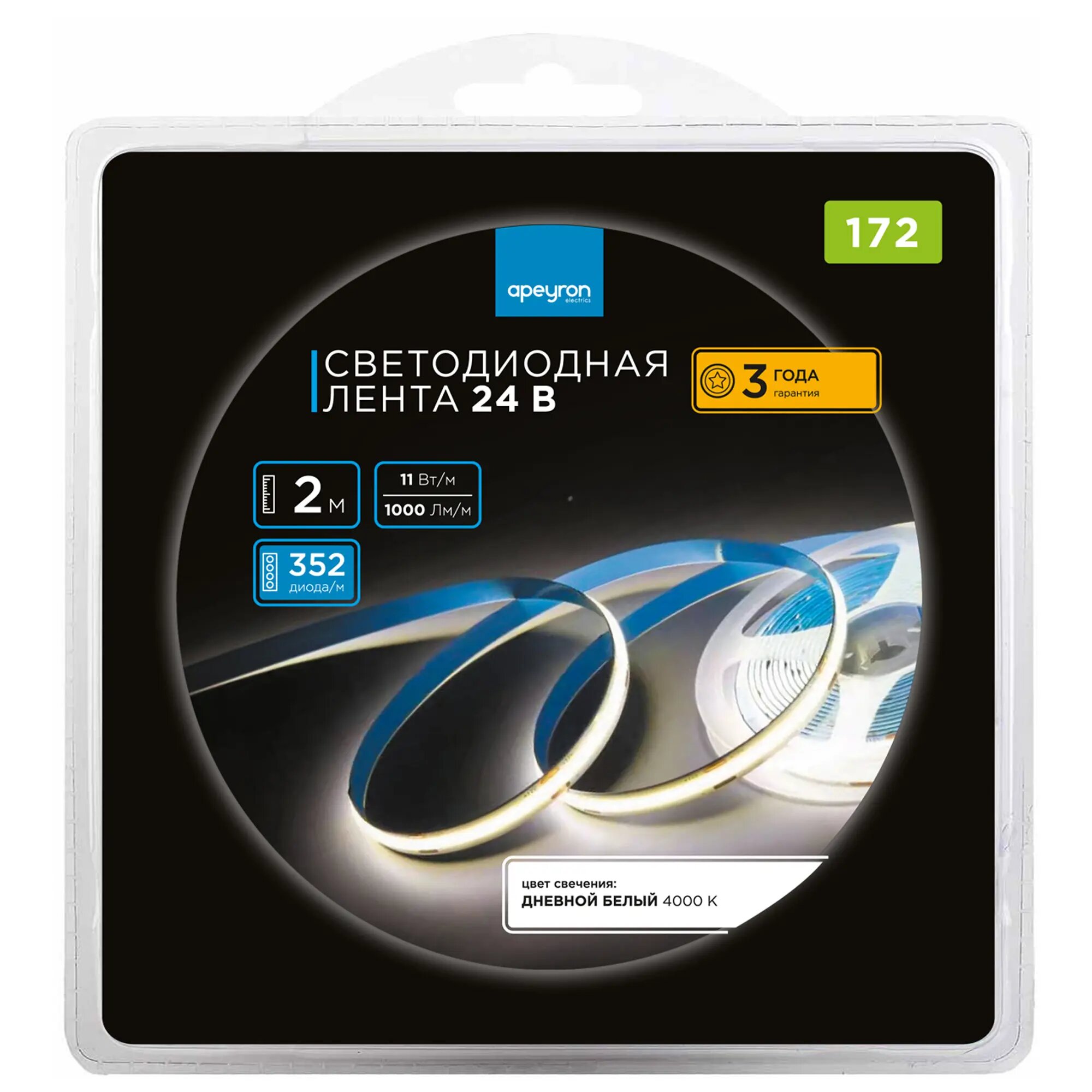 Купить Светодиодная лента Apeyron 172ОО 11 Вт/м 24 В 10 мм IP20 2 м нейтральный белый свет