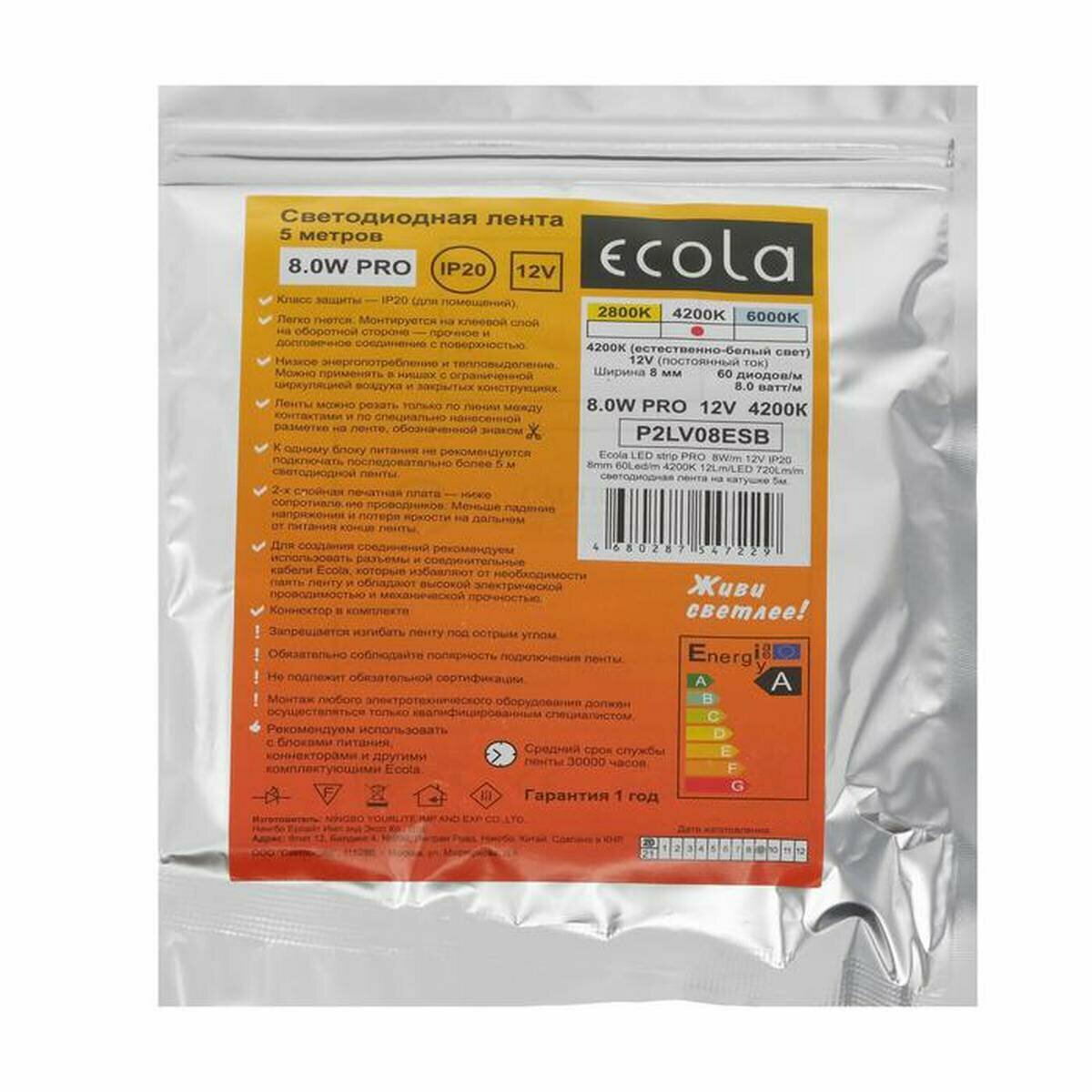 Светодиодная лента на катушке Ecola LED strip PRO 8W/m 12V IP20 8mm 60Led/m 4200K 12Lm/LED 720Lm/m 5м. P2LV08ESB интересное:
