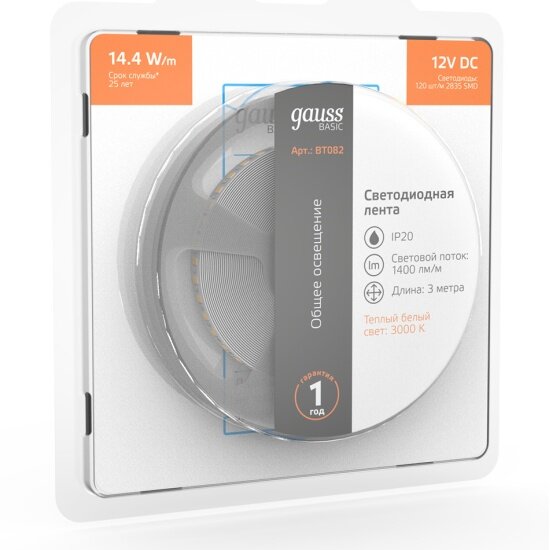 Gauss Лента светодиод. Gauss Basic 3м (BT082)