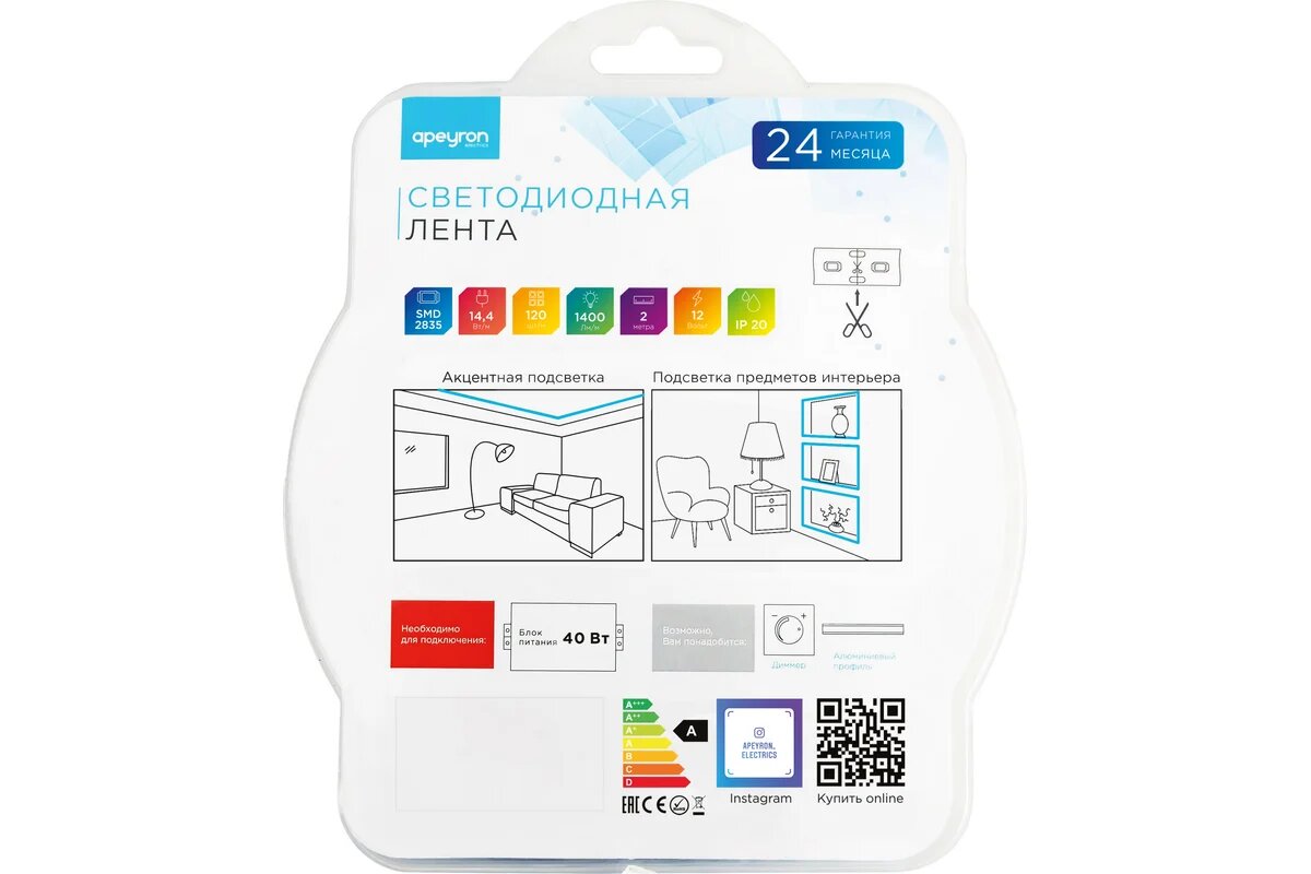 Светодиодная лента в блистере APEYRON 12В, СТ, 14,4Вт/м, smd2835 211BL интересное: