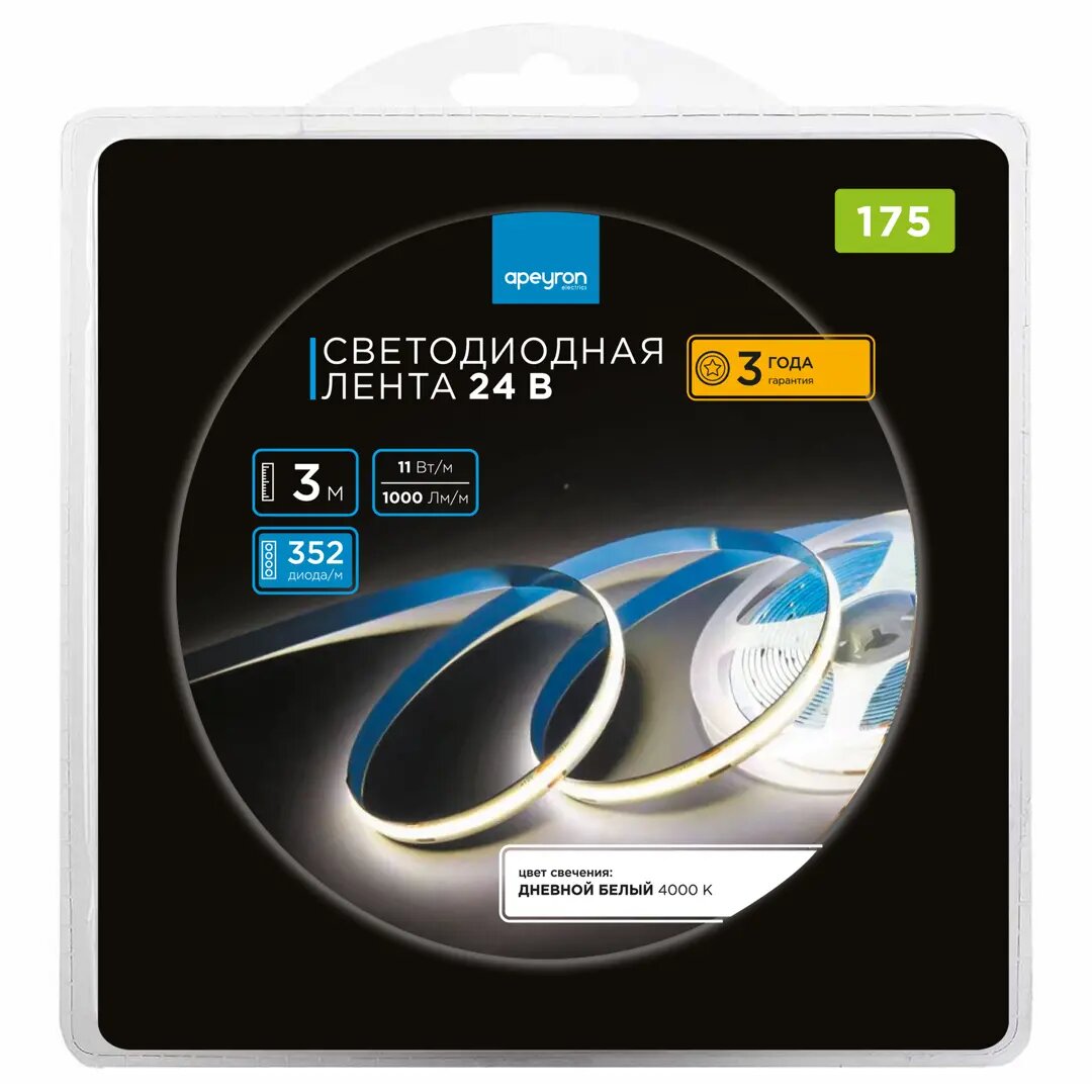 Купить Светодиодная лента Apeyron 175ОО 11 Вт/м 24 В 10 мм IP20 3 м нейтральный белый свет
