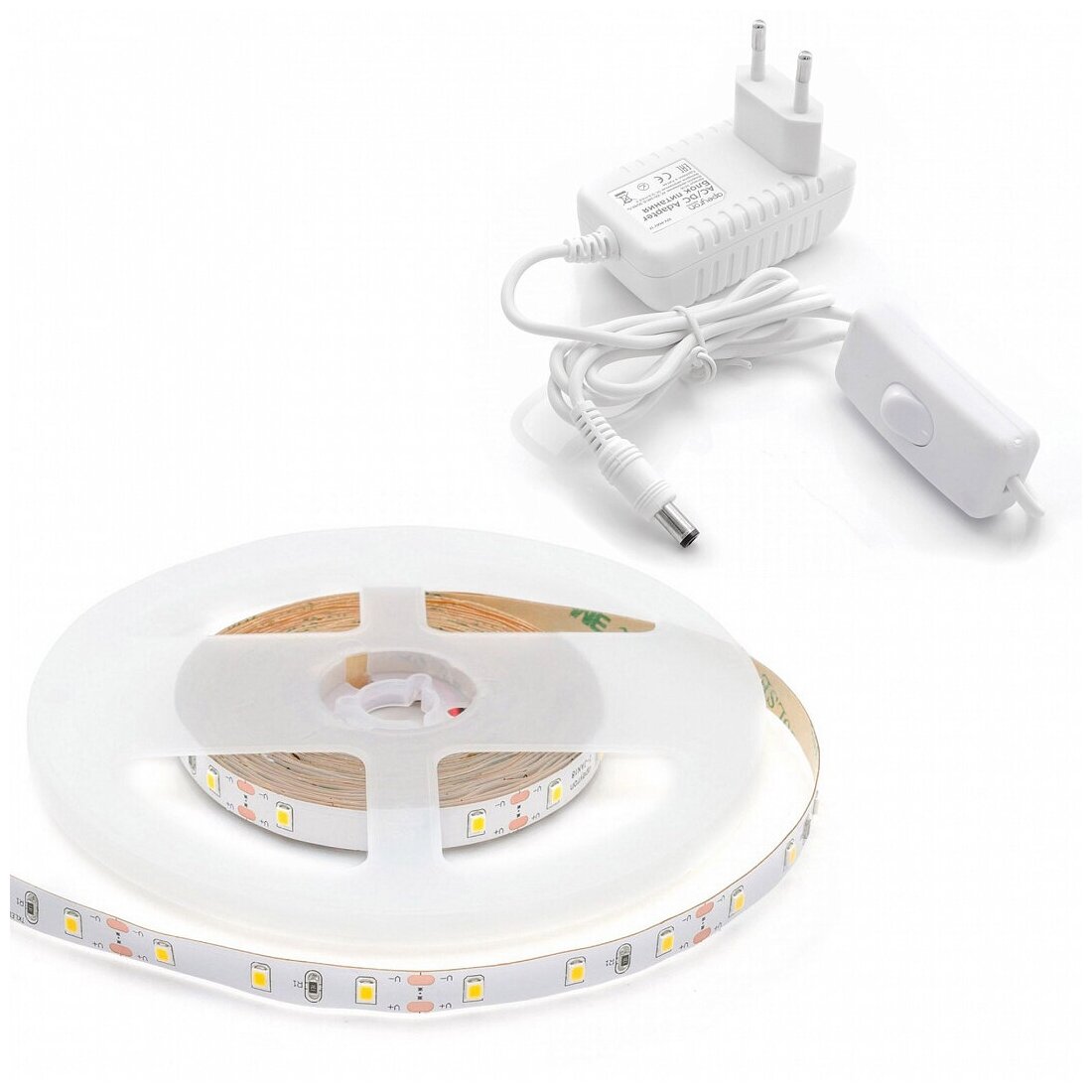 10-21 Комплект светодиодной ленты 12В, 4,8Вт/м, smd3528, 60 д/м, 280 лм/м, IP65, 2,5м, коннектор, БП, т/б