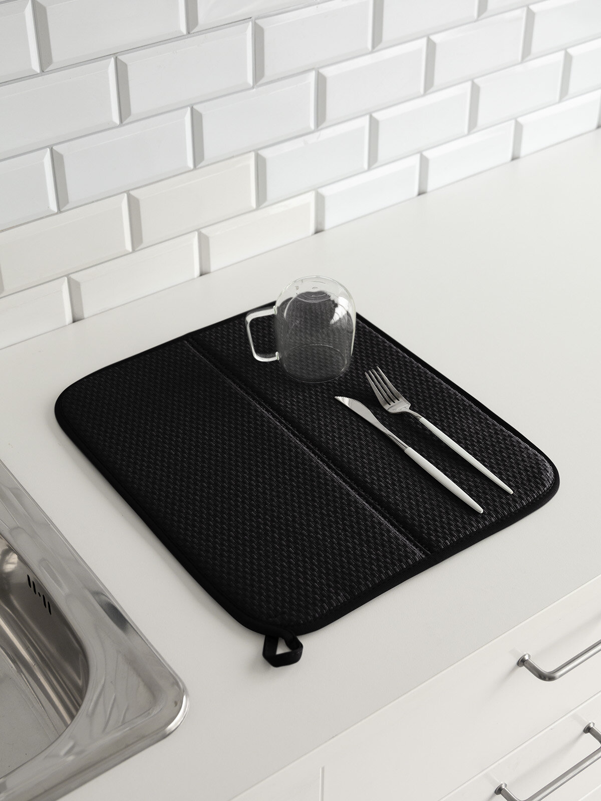 Коврик для сушки посуды LUCKY складной 38x44, микрофибра, черный интересное:
