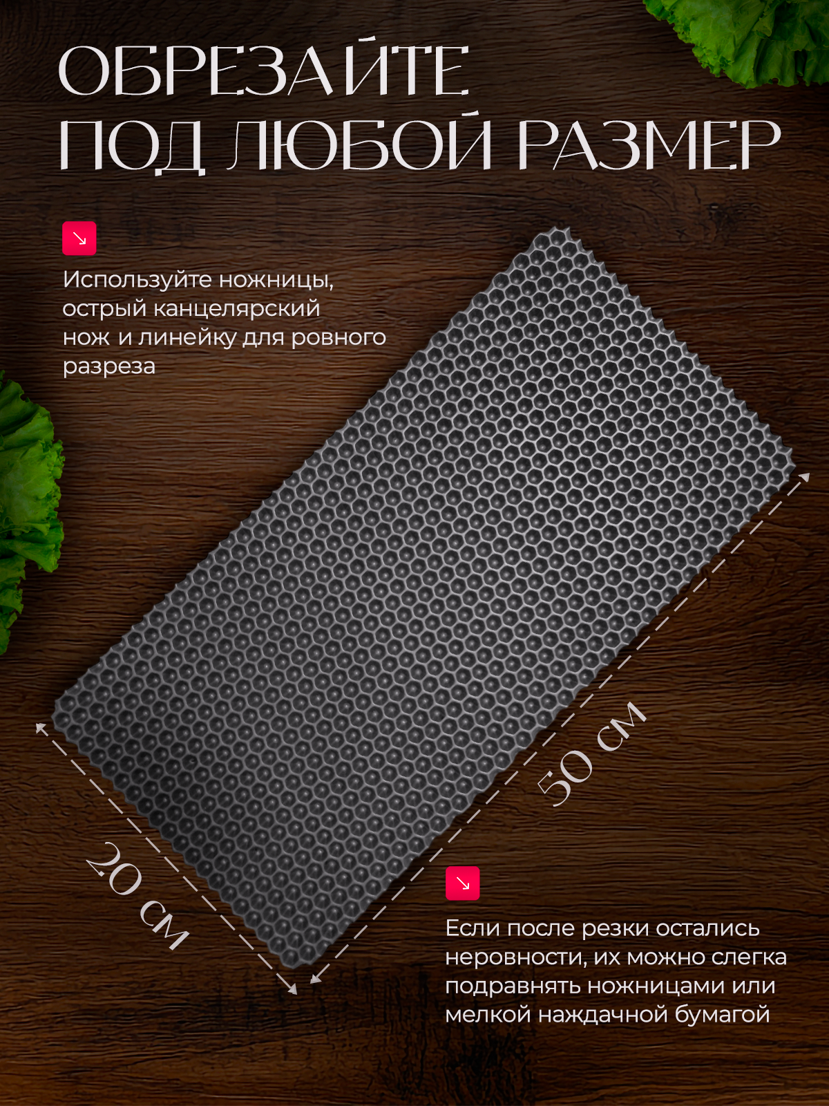 Эва коврик для сушки посуды, 20х50см , черные соты / Для кухни / Eva, Ева