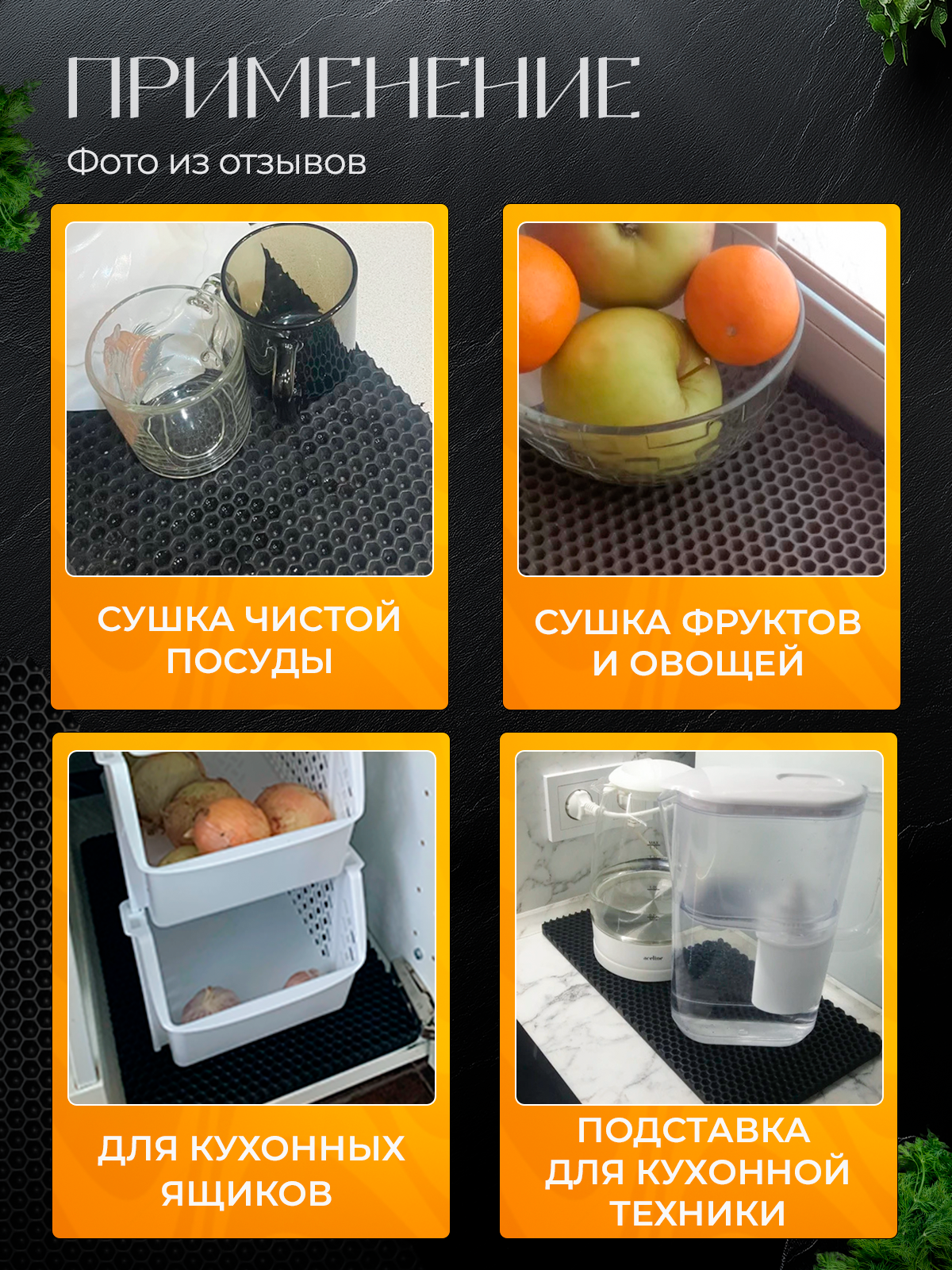 СохранитьНабор Эва ковриков для сушки посуды из трех штук, 20х40см , черные соты / Для кухни / Eva, Ева интересное: