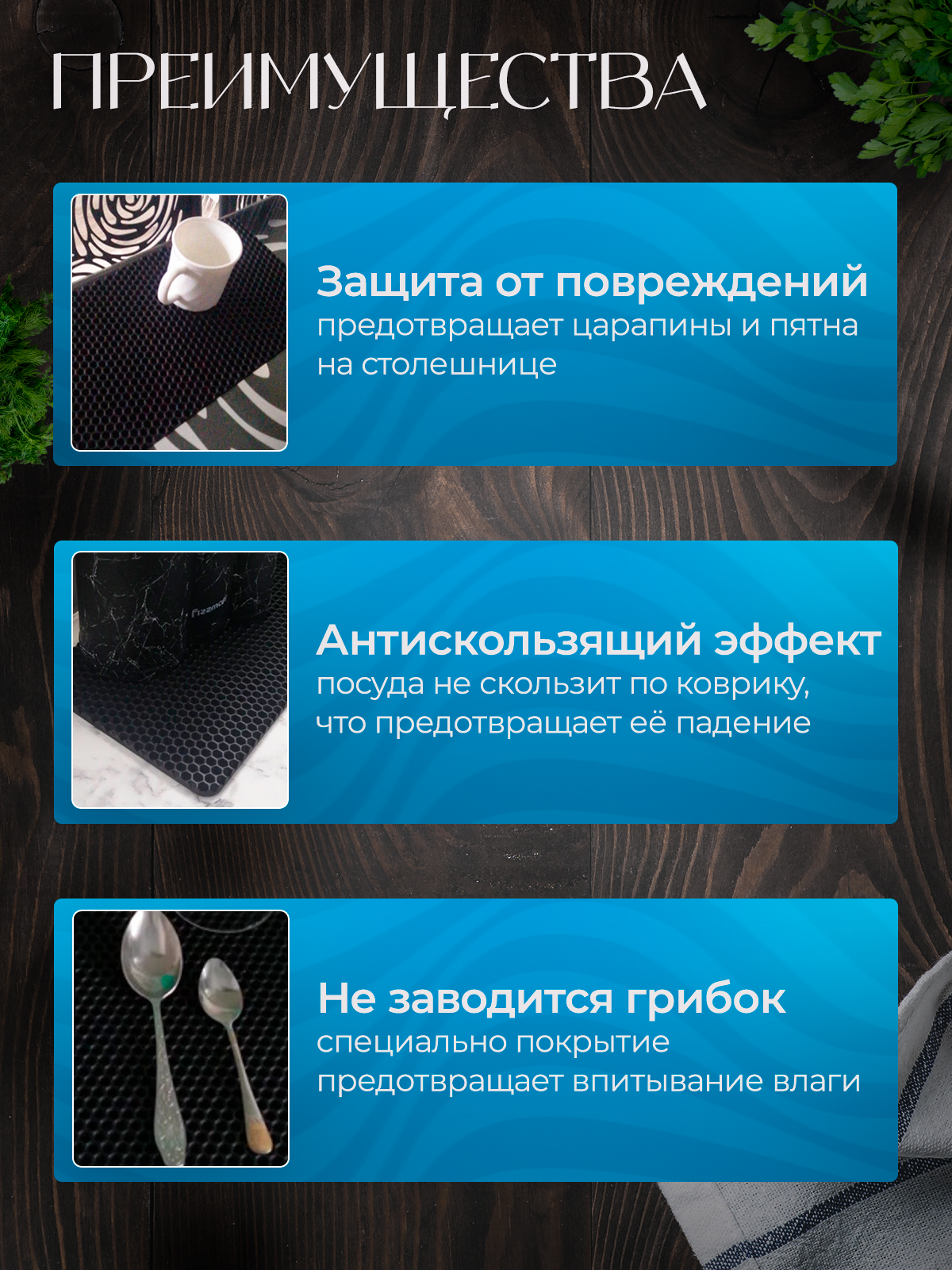 СохранитьНабор Эва ковриков для сушки посуды из трех штук, 20х50см , черные соты / Для кухни / Eva, Ева интересное: