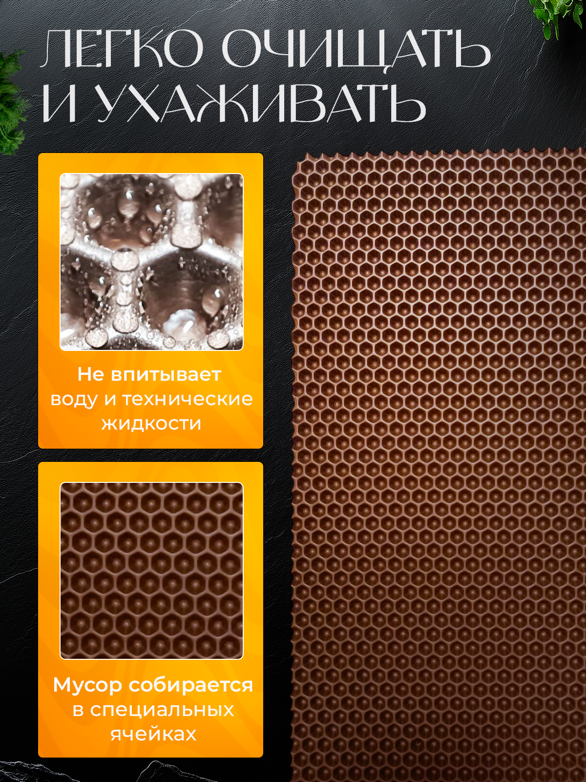 СохранитьНабор Эва ковриков для сушки посуды из трех штук, 20х40см , коричневые соты / Для кухни / Eva, Ева интересное: