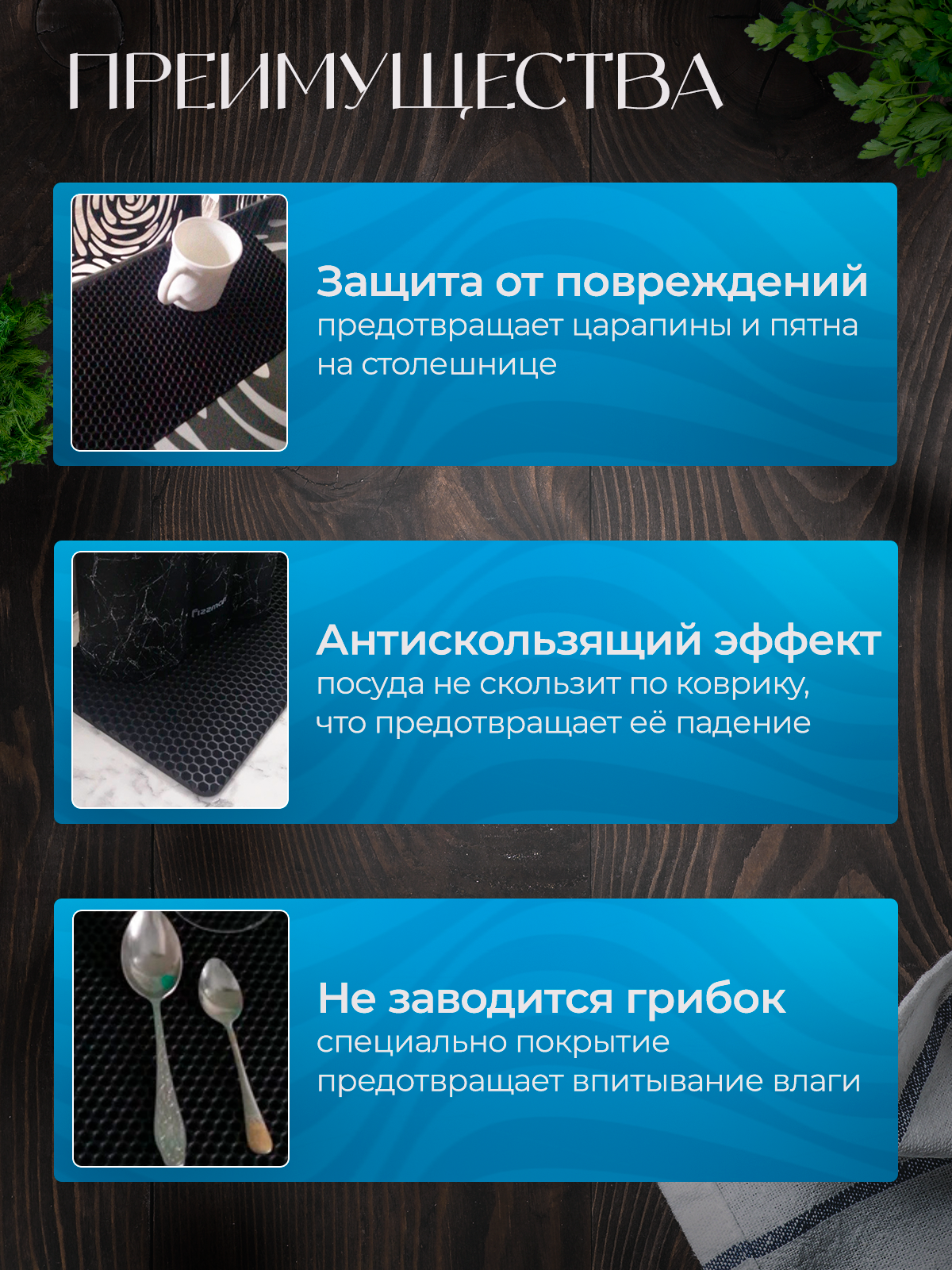 СохранитьБарный коврик 20х50 см для сушки посуды 3 шт, коричневые соты интересное: