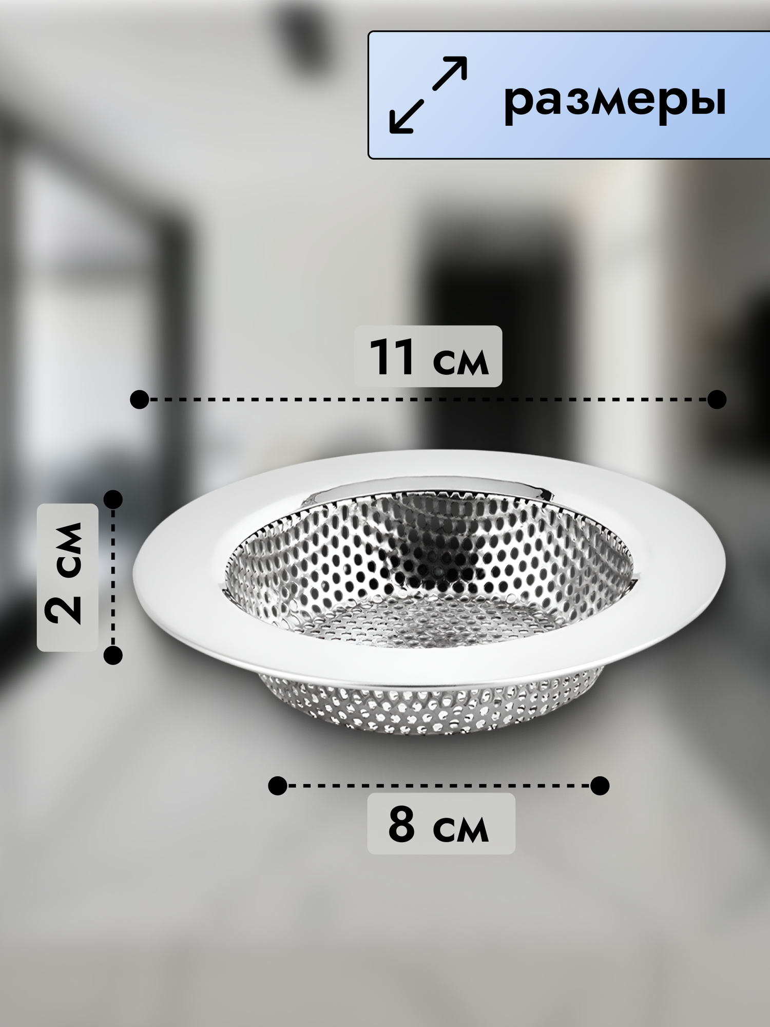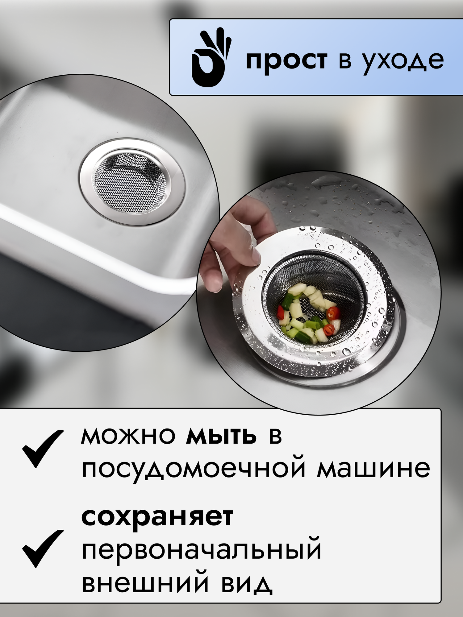 Ситечко для раковины на кухню / сетка металлическая для кухни ванной / 11 см (Серебристый) интересное: