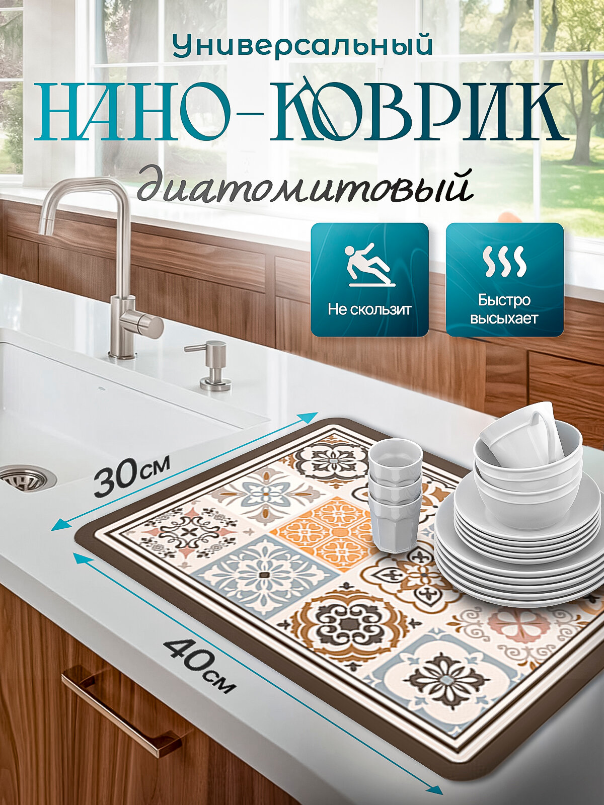 Нано-коврик для сушки посуды быстросохнущий 30*40см