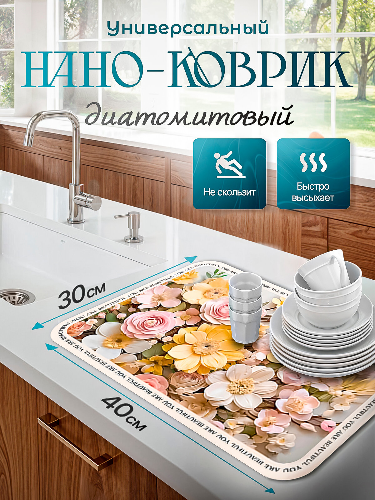 Нано-коврик для сушки посуды быстросохнущий 30*40см