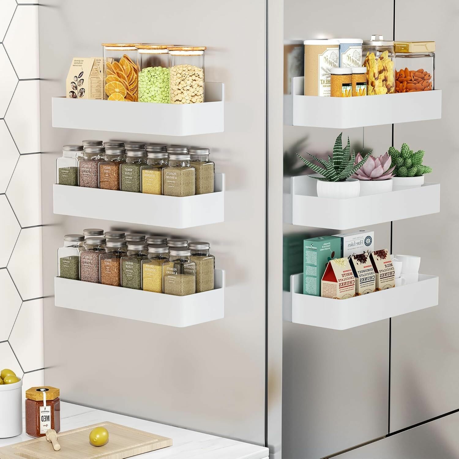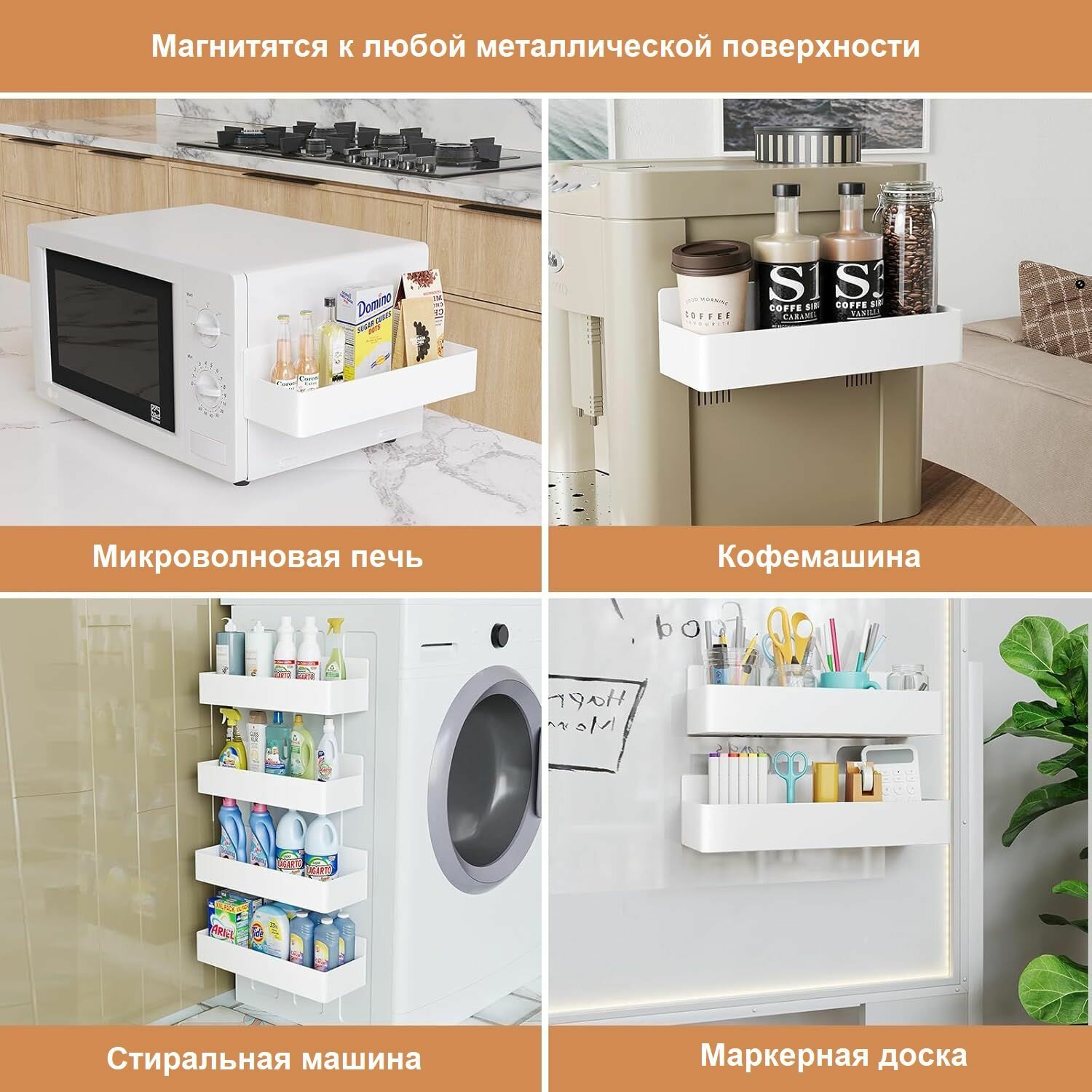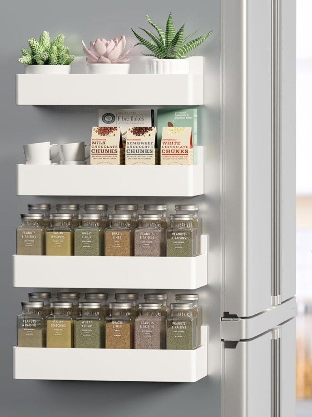 Магнитная полка на холодильник белая / Закрытые бортики / Набор 4 шт. полки на магнитах интересное: