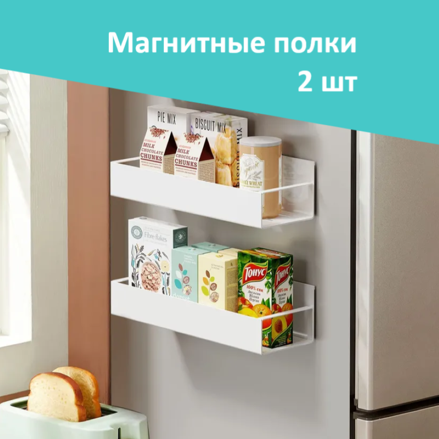 Купить Магнитная полка на холодильник белая с закрытыми бортиками, 2 шт.