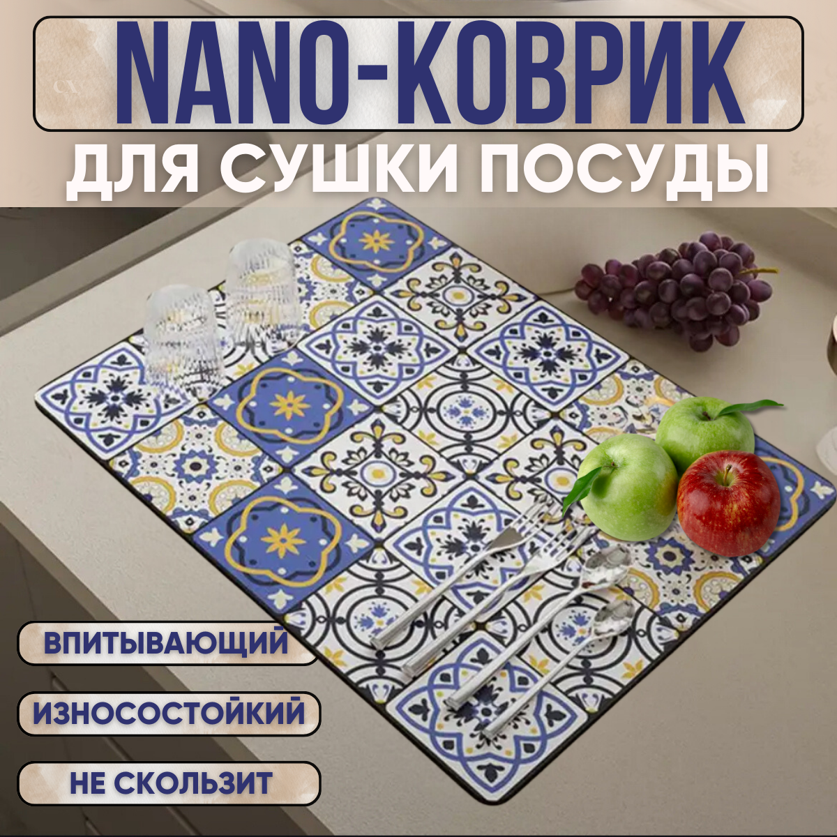 Коврик для сушки посуды, влаговпитывающий нано-коврик 50х40см, мозаика. интересное: