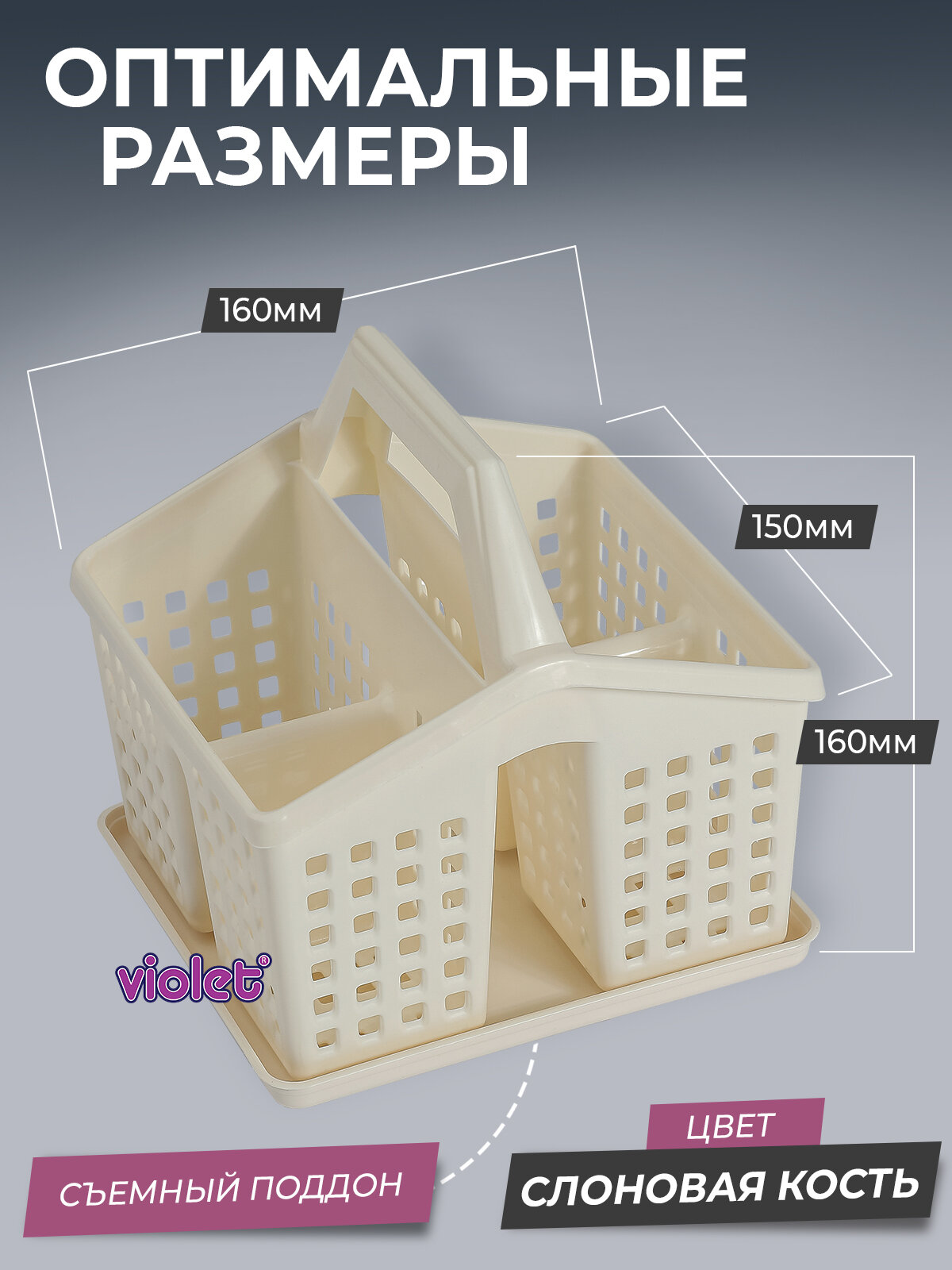 Купить Подставка для столовых приборов Лофт, цвет слоновая кость / кухонный органайзер / контейнер для кухонных принадлежностей