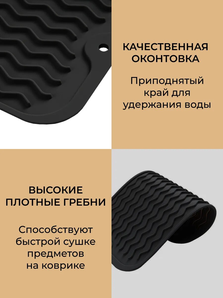 Коврик для сушки посуды силиконовый, коврик для посуды 15х30 см, черный интересное: