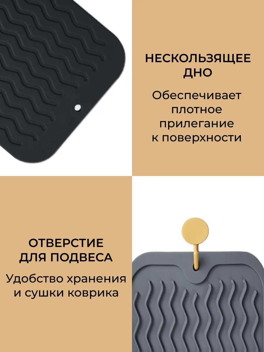 Коврик силиконовый 15х30 см, подставка для сушки посуды, для хранения кухонных принадлежностей, темно-серый
