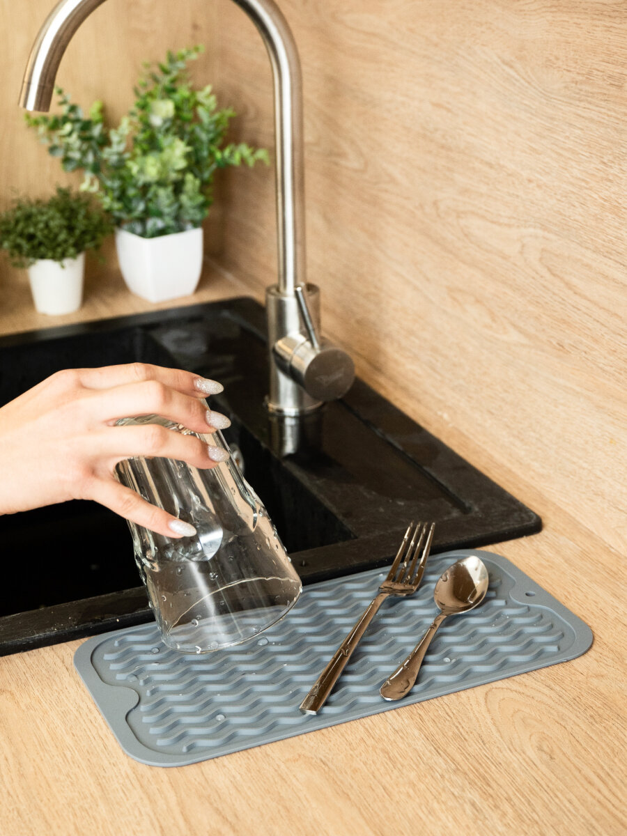 Коврик для сушки посуды, силиконовый, прямоугольный, 30x30 см, серый