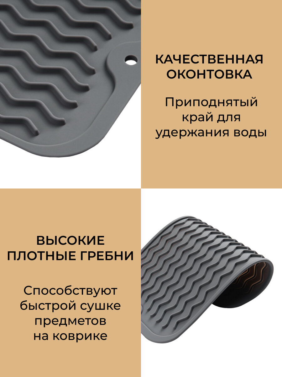Коврик силиконовый 15х30 см, подставка для сушки посуды, для хранения кухонных принадлежностей, темно-серый интересное:
