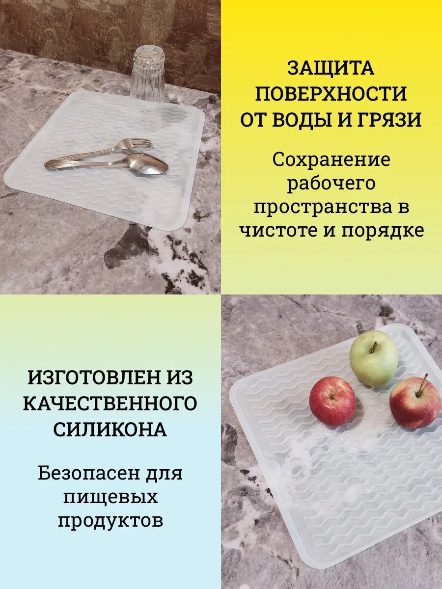 Коврик для сушки посуды, силиконовый, 30 x 30 см, прозрачный интересное: