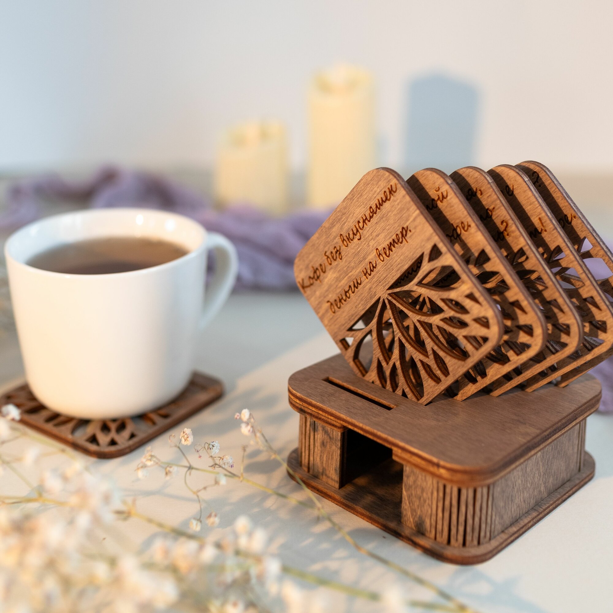 Подставка под кружку "Bezusoff" цвет венге 8 см, 6 шт в коробке под чай