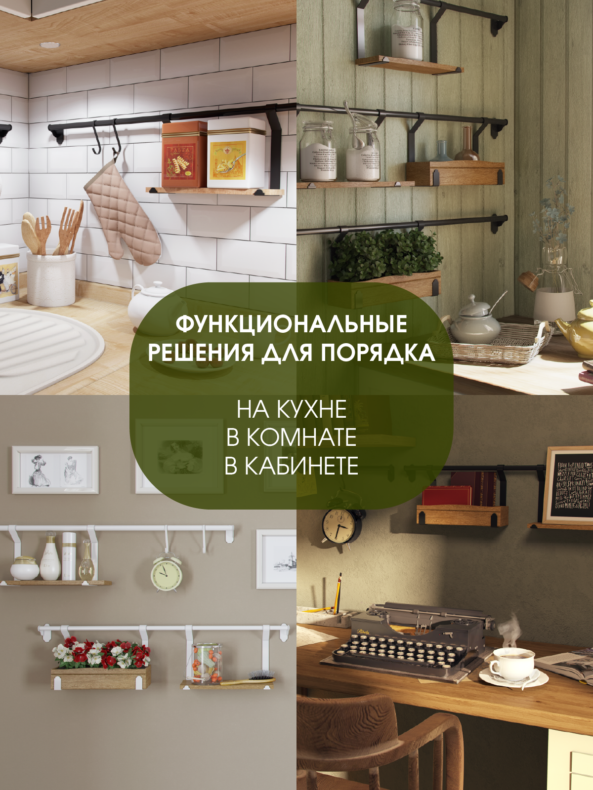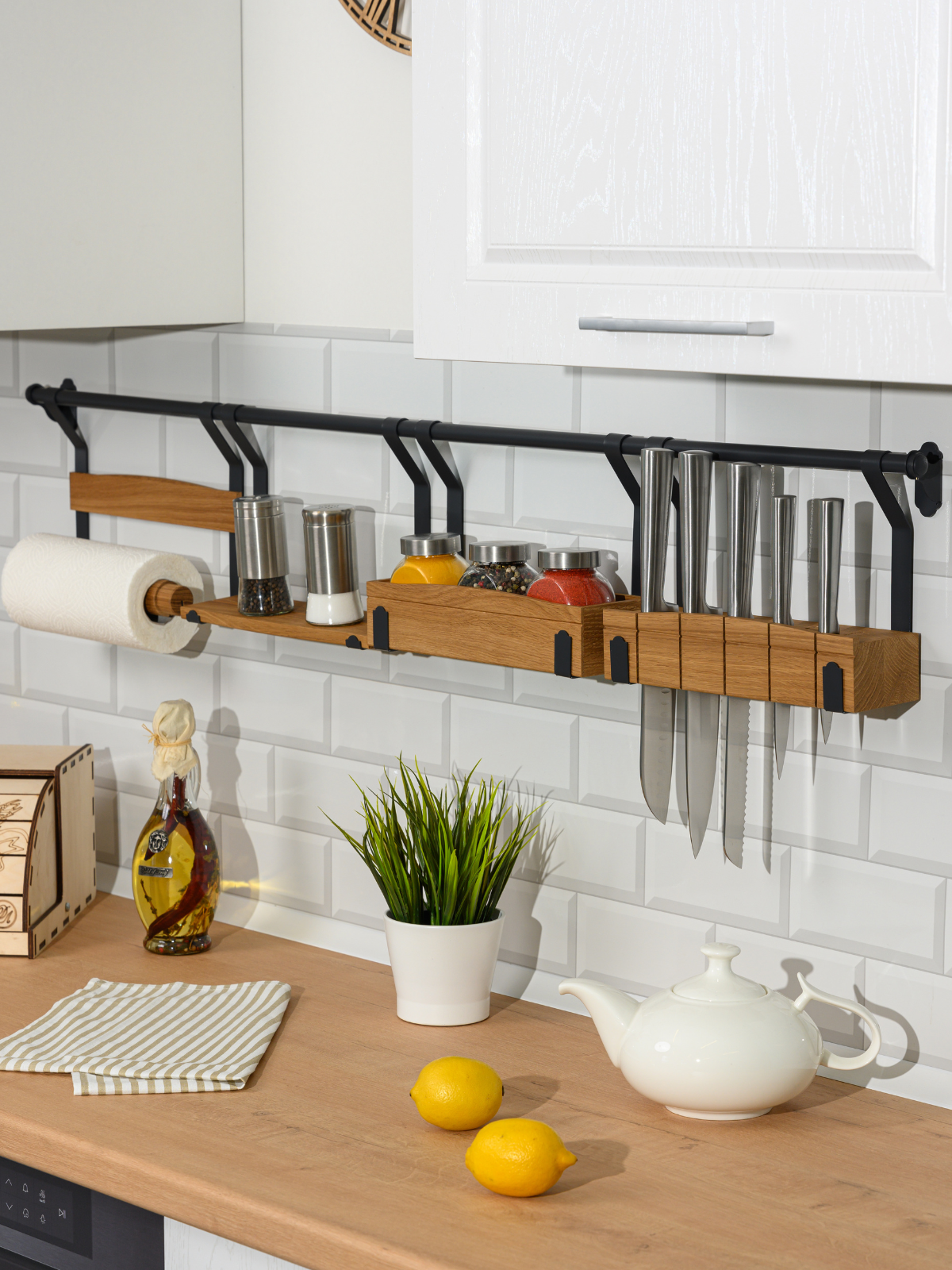 Полка на рейлинг L фабрика, для специй, деревянная, черная, 28 см x 9 см интересное:
