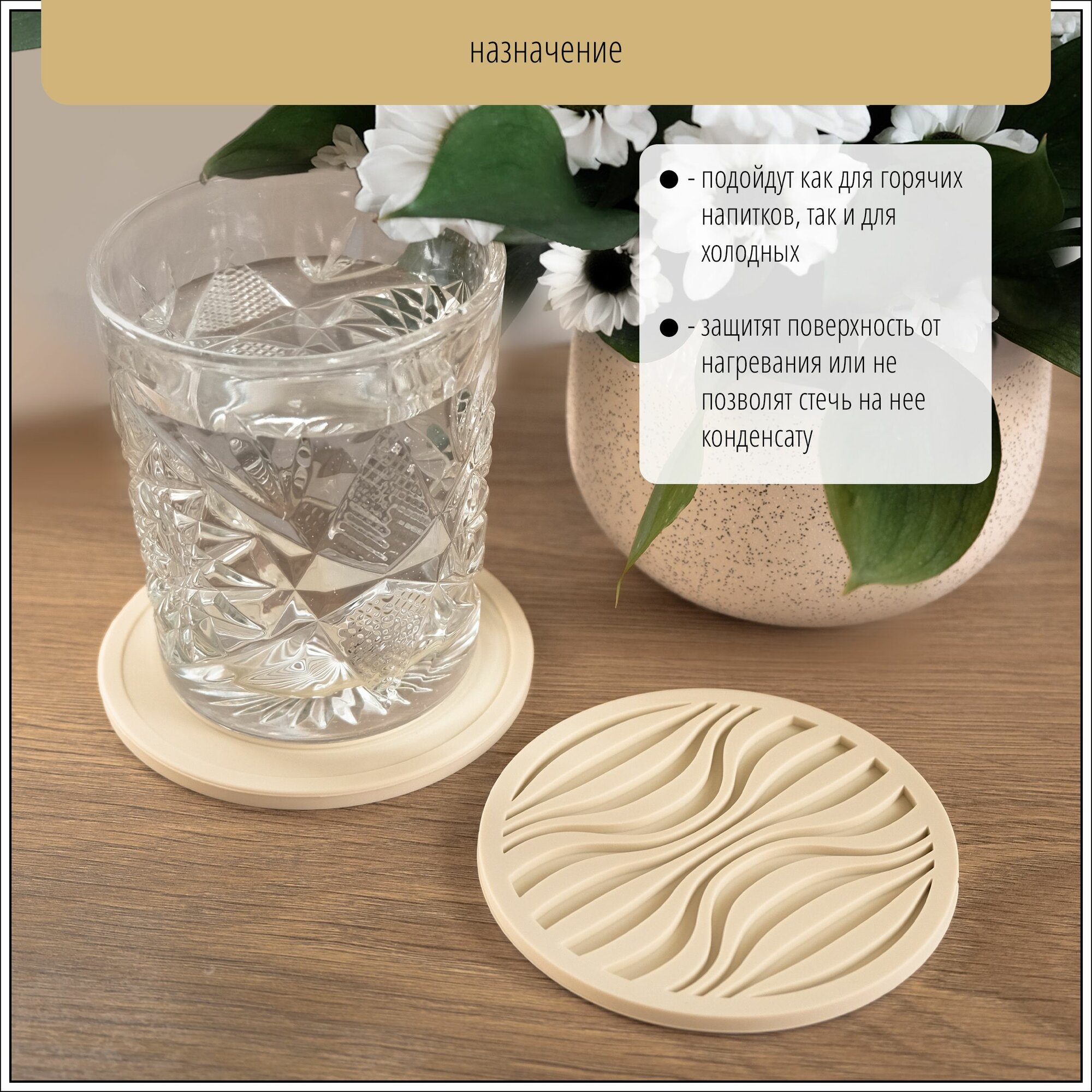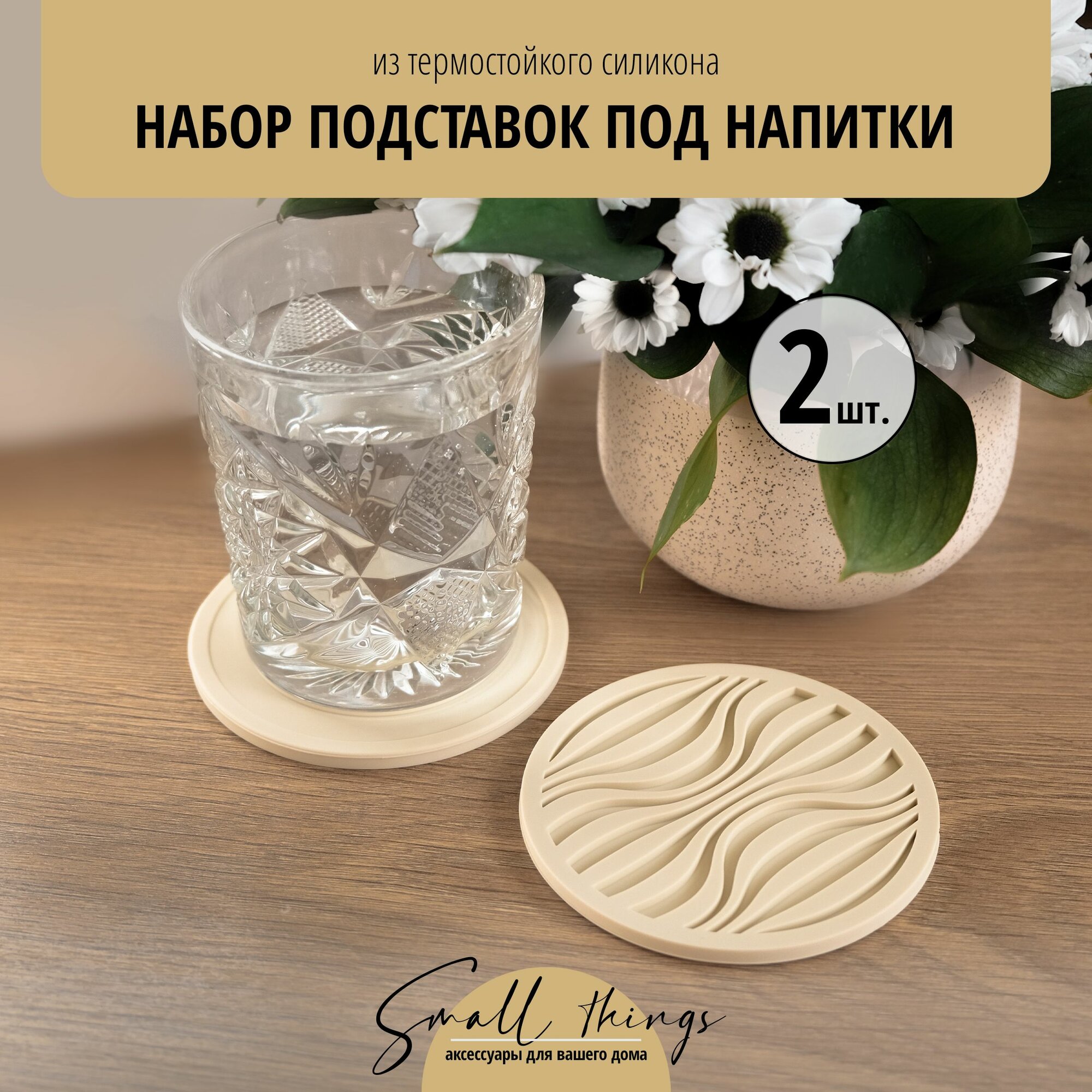 Купить Силиконовые подставки под кружку, стакан. Подставки под горячее. Бежевые, набор 2 шт.