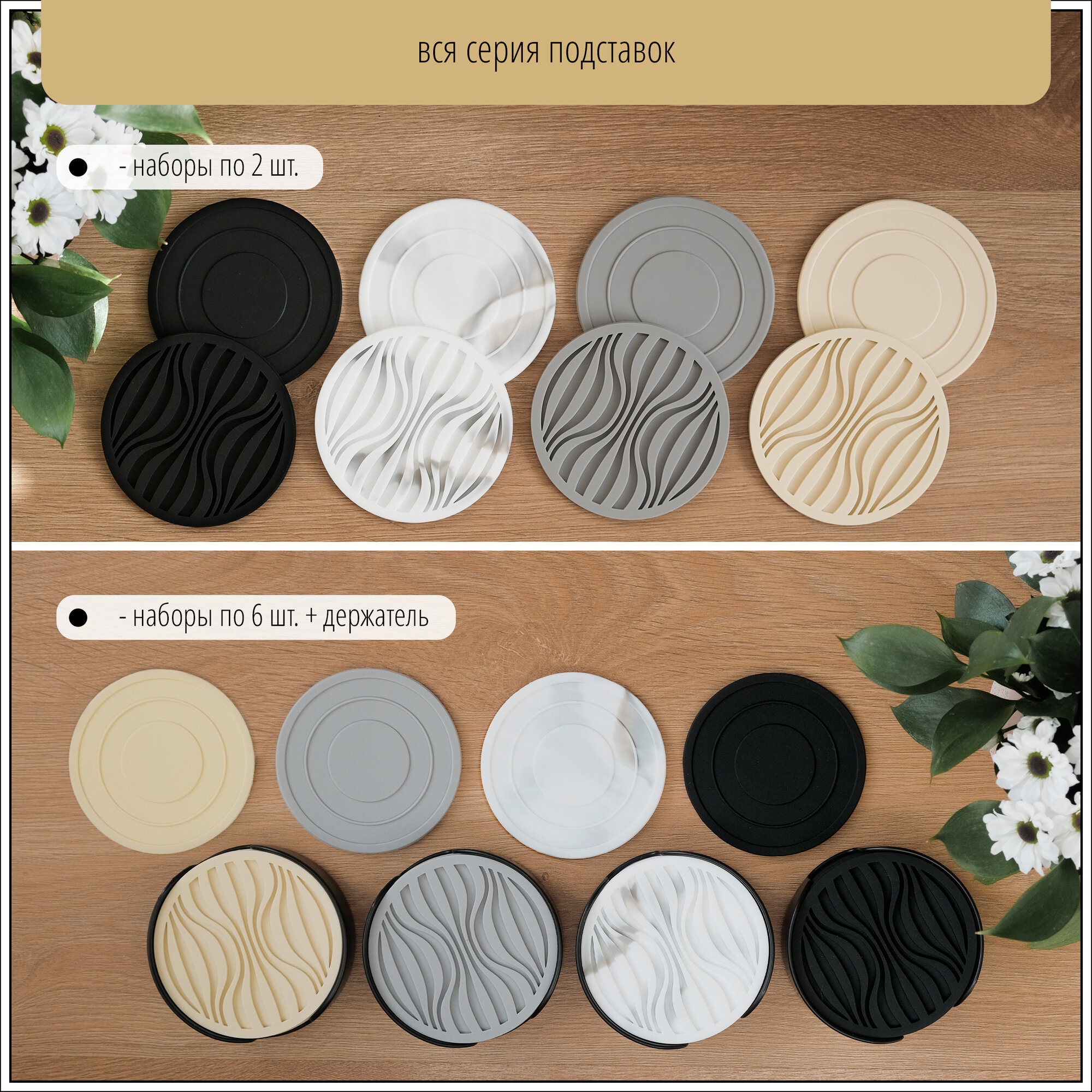 Силиконовые подставки под кружку, стакан. Подставки под горячее. Светло-серые, набор 6 шт. с держателем