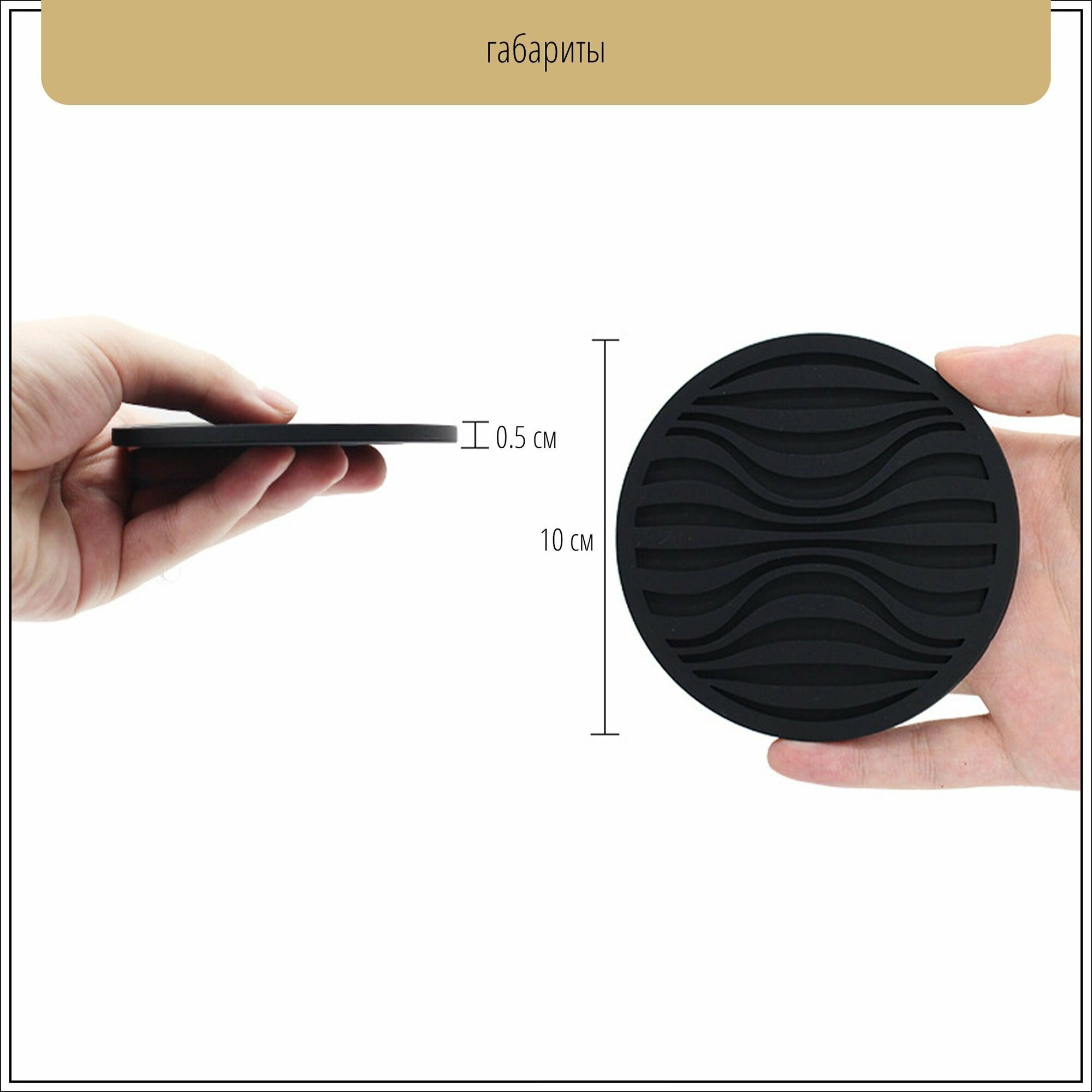 Купить Силиконовые подставки под кружку, стакан. Подставки под горячее. Черные, набор 2 шт.