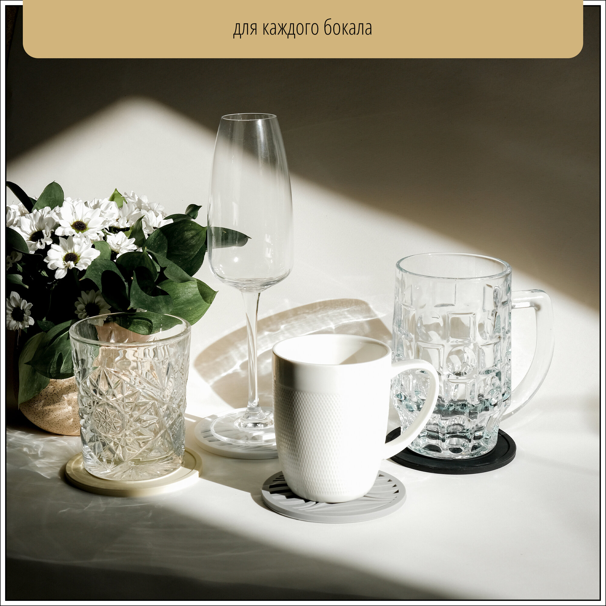 Силиконовые подставки под кружку, стакан. Подставки под горячее. Бежевые, набор 2 шт.