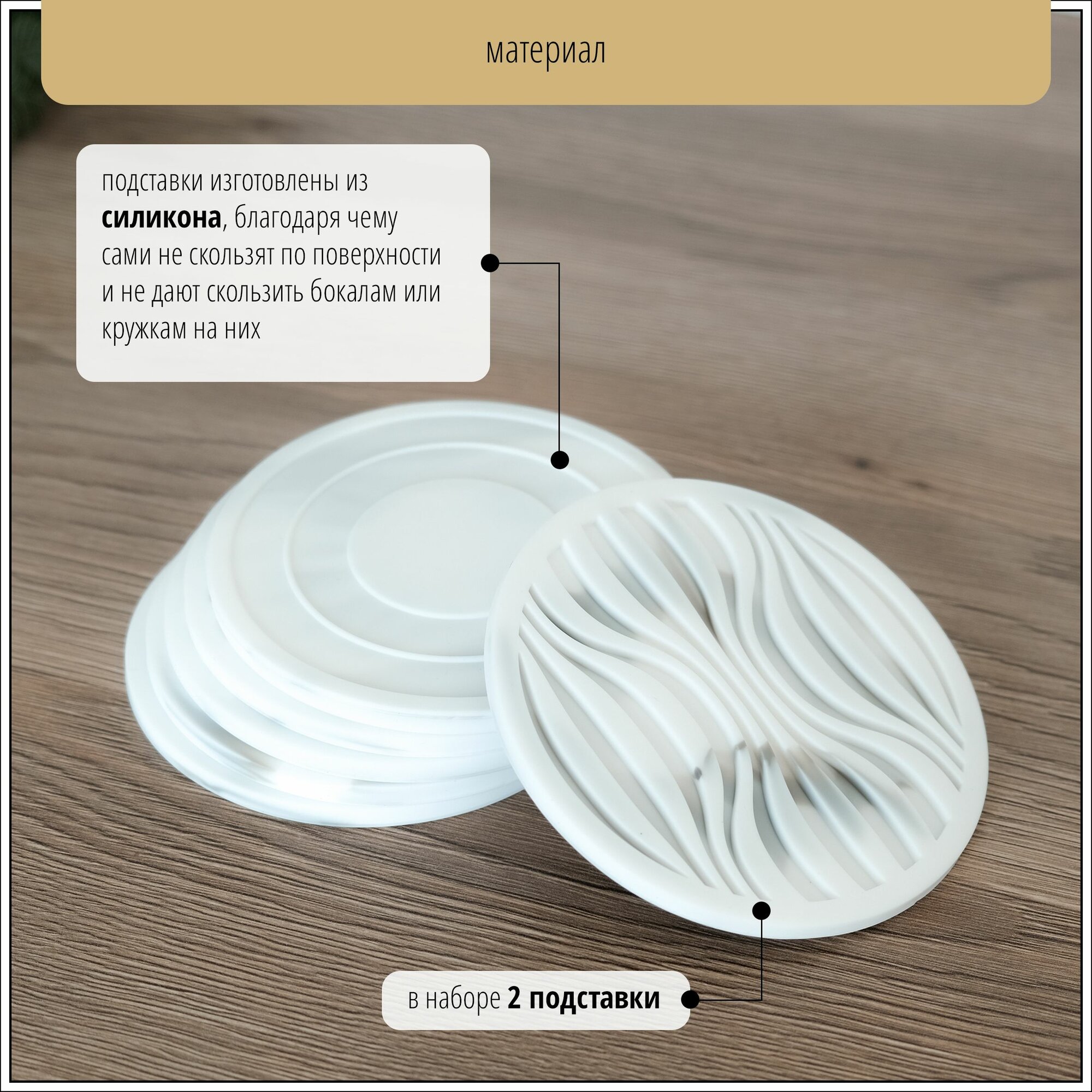 Купить Силиконовые подставки под кружку, стакан. Подставки под горячее. Белые, набор 2 шт.
