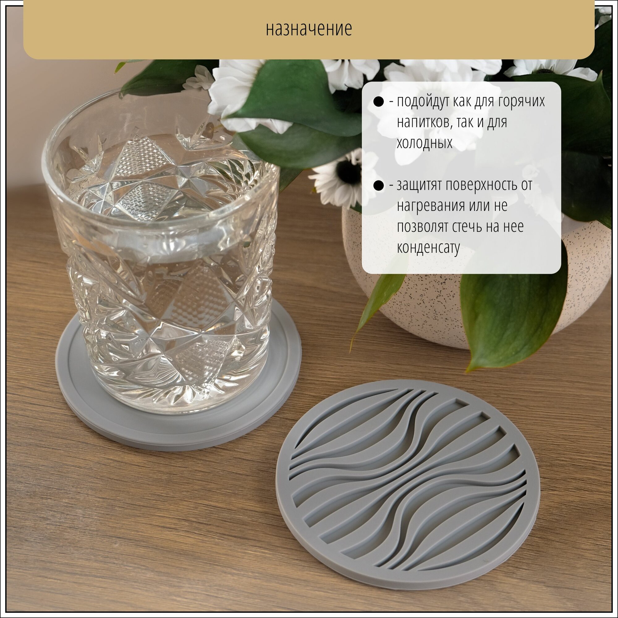 Купить Силиконовые подставки под кружку, стакан. Подставки под горячее. Светло-серые, набор 2 шт.