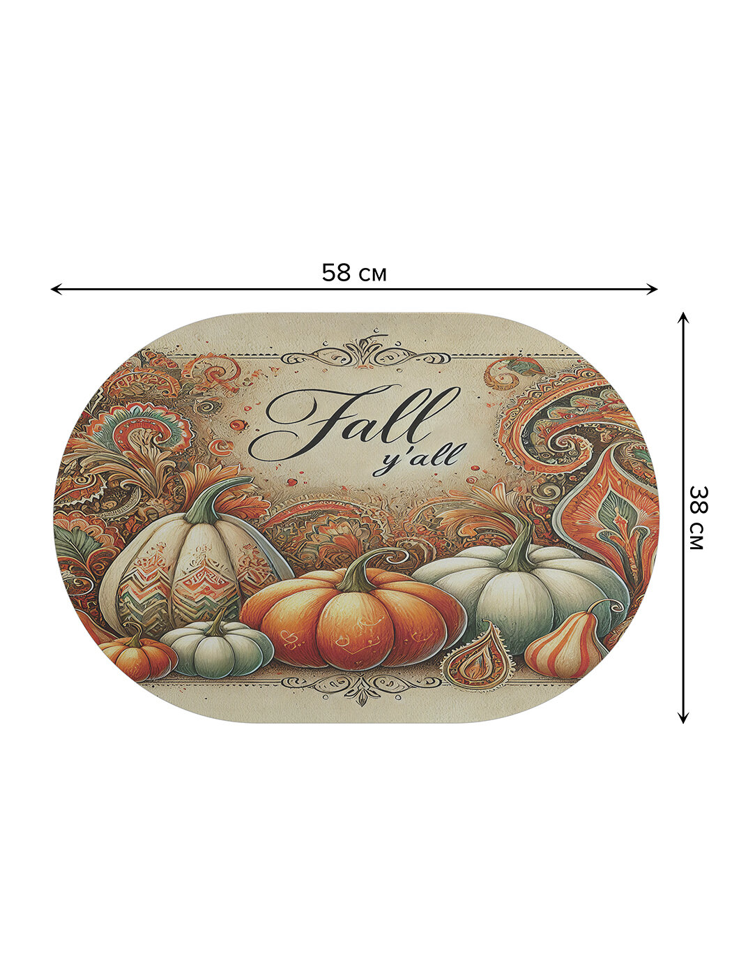 Коврик овальный для сушки посуды "Тыква в узоре" овальный 58x38, JoyArty интересное: