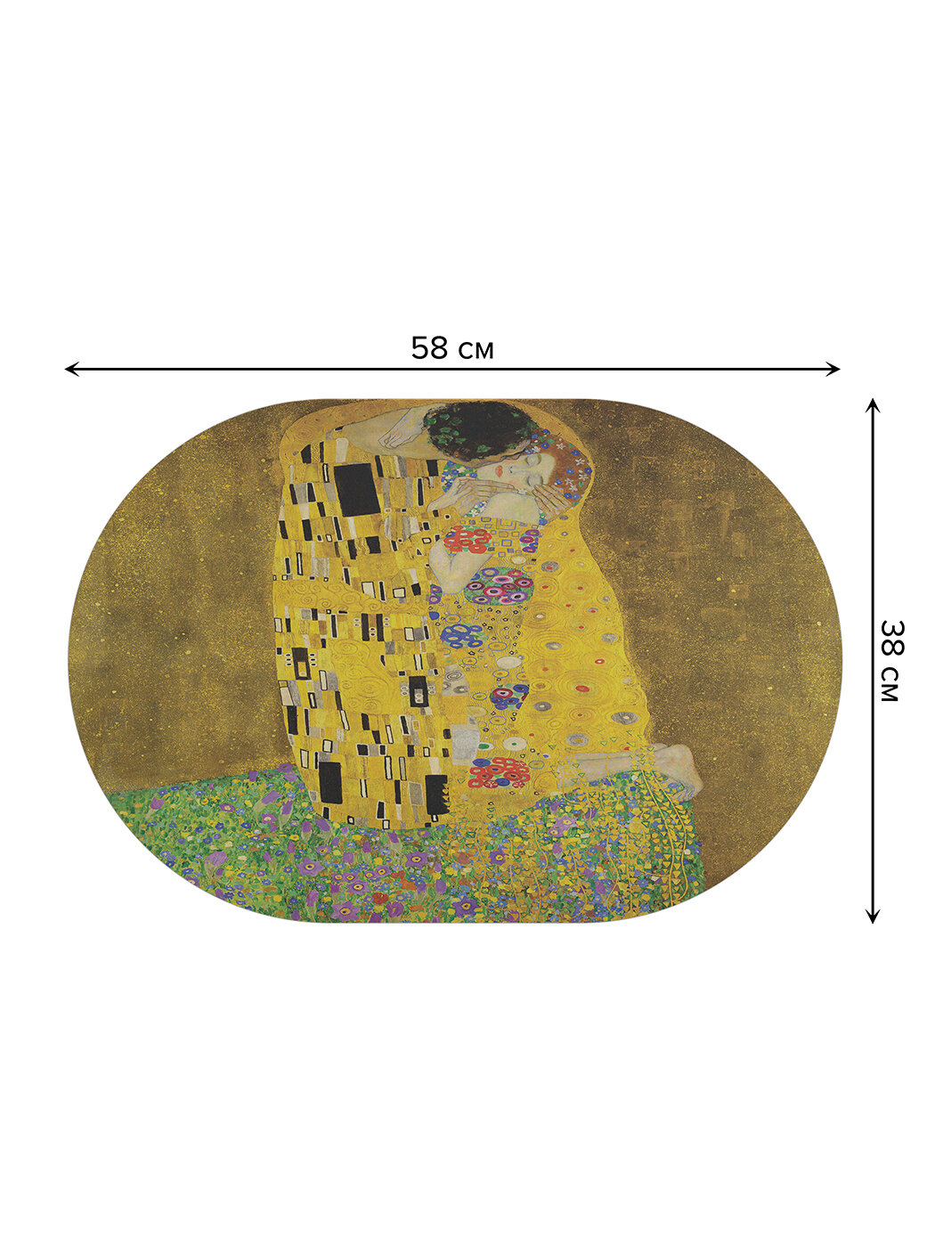 Коврик для сушки посуды впитывающий для кухни JoyArty "Густав Климт Поцелуй" овальный 58x38 см интересное: