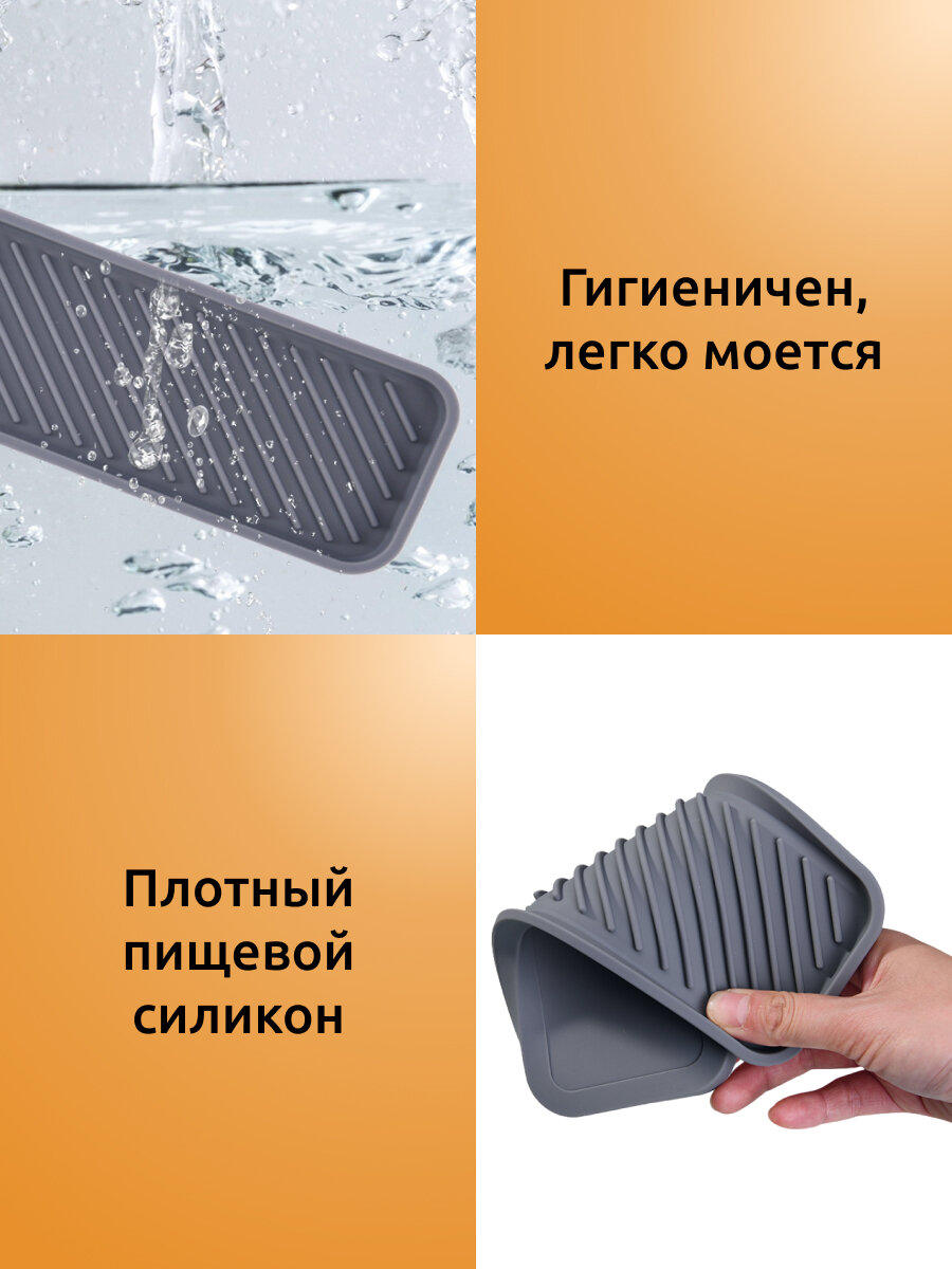 Подставка для губки и моющего средства силиконовая, органайзер на кухню 22,5х9х1,2 см, серый интересное: