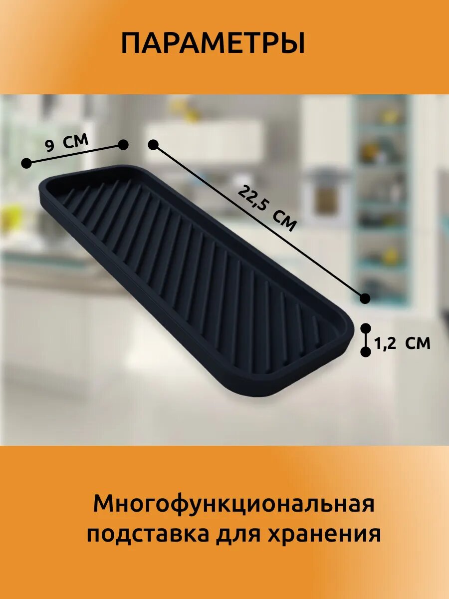 Подставка для губки и моющего средства силиконовая, органайзер на кухню 22,5х9х1,2 см, серый