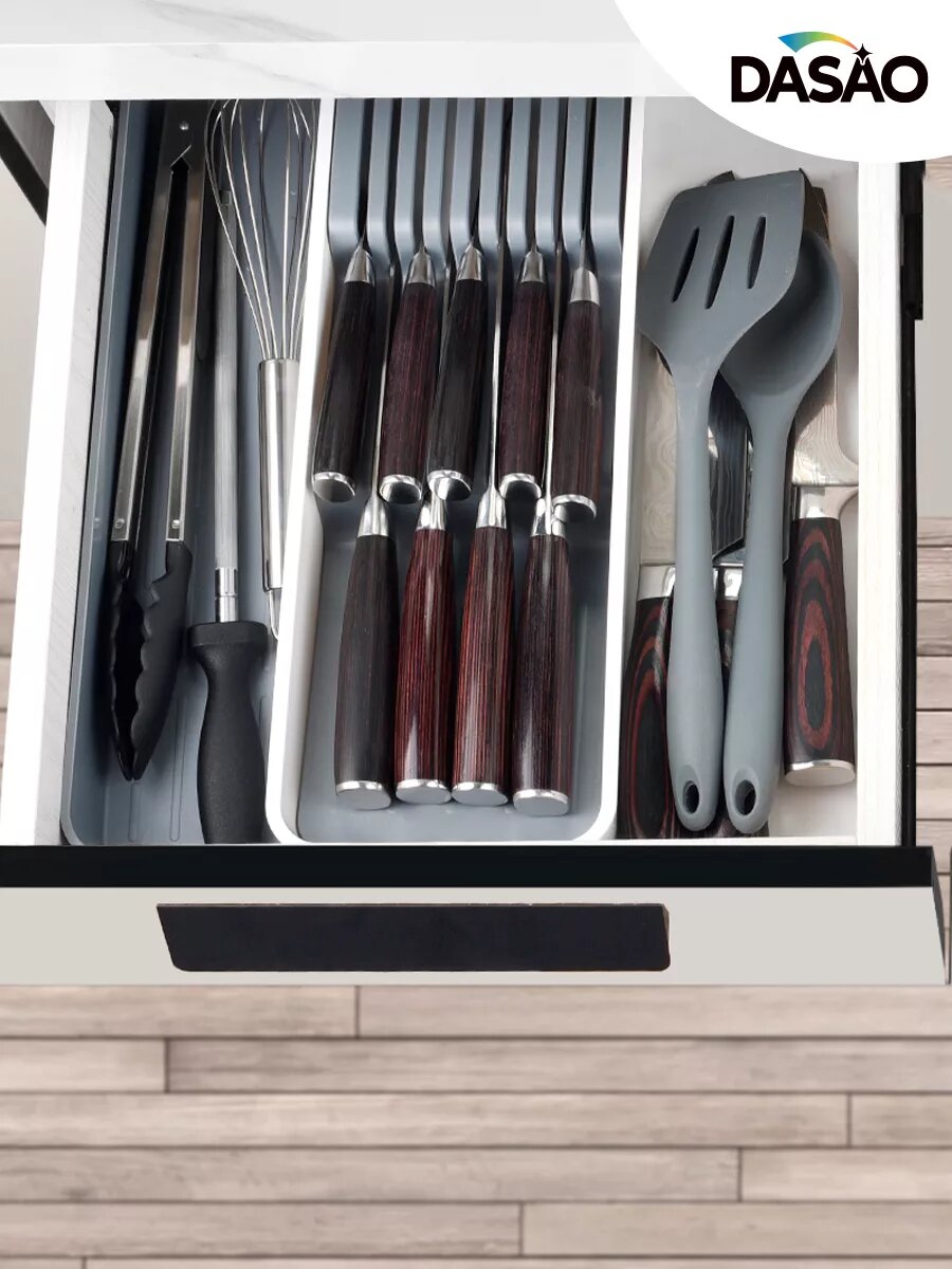 Лоток раздвижной для ножей и столовых приборов в ящик, 39.5 х 14-23 см интересное: