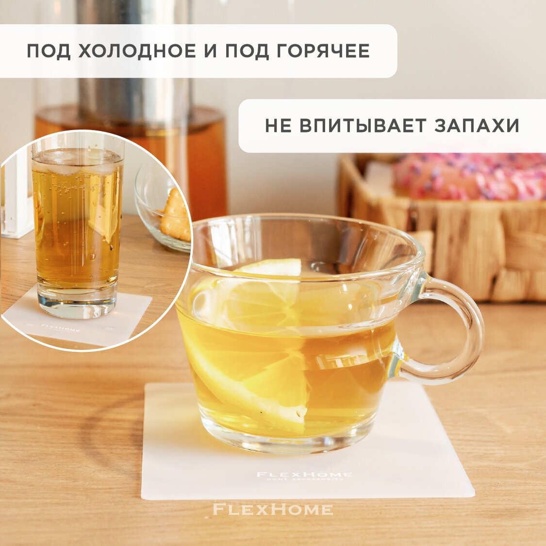 Костер силиконовый для сервировки, подставка под кружку, стакан FlexHome, 1 шт квадрат, белый интересное: