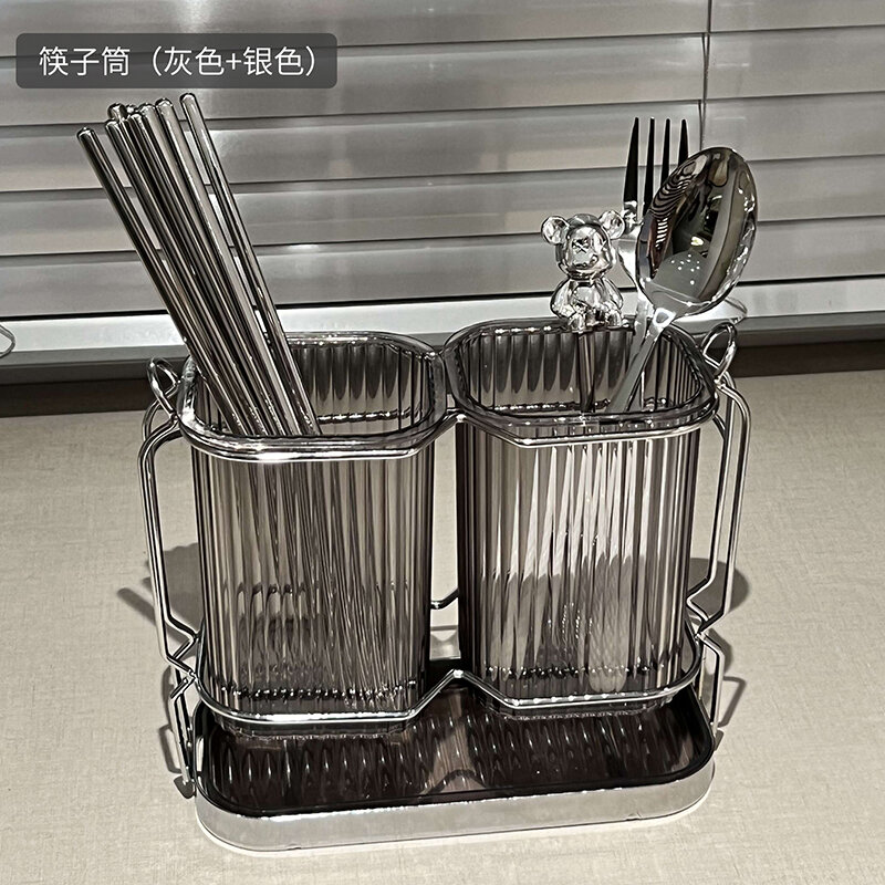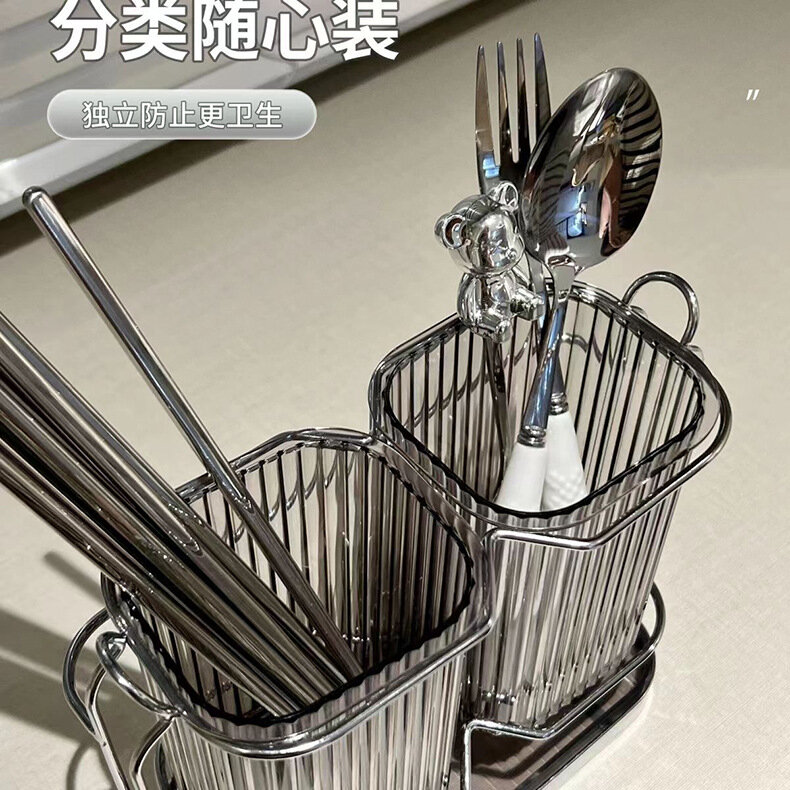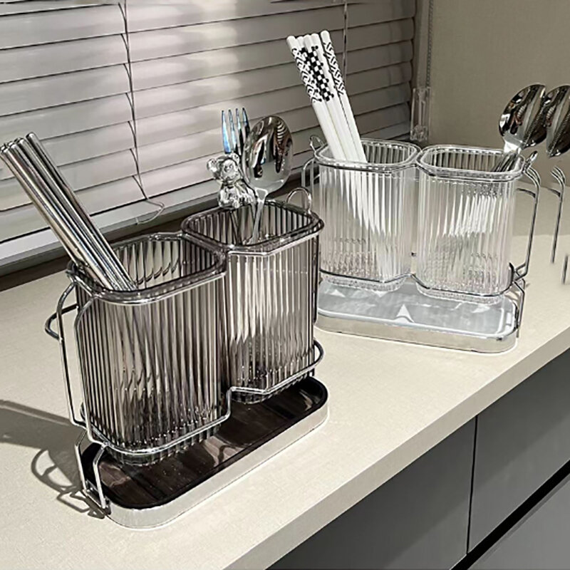 Подставка для столовых приборов Мастер Рио, нержавеющая сталь и пластик, 2 яруса, серебристая