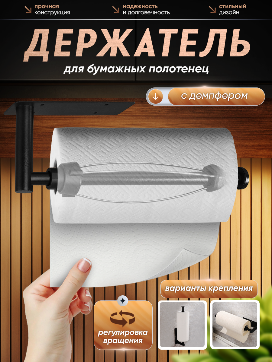 Держатель для бумажных полотенец с демпфером подвесной чёрный интересное: