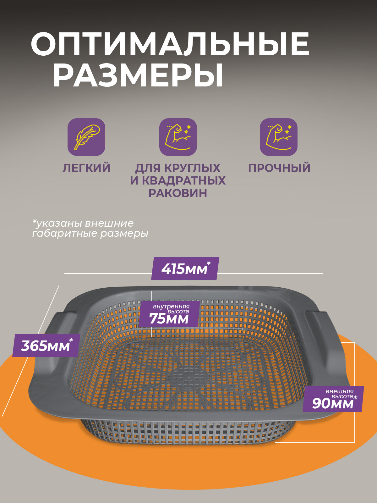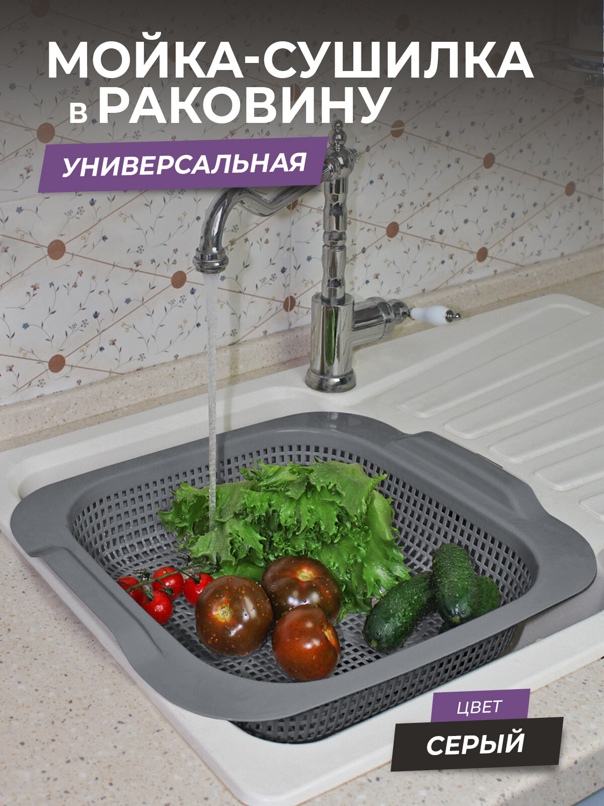 Мойка-сушилка для раковины квадратная, цвет серый / дуршлаг на мойку / сушилка для овощей, фруктов и посуды интересное: