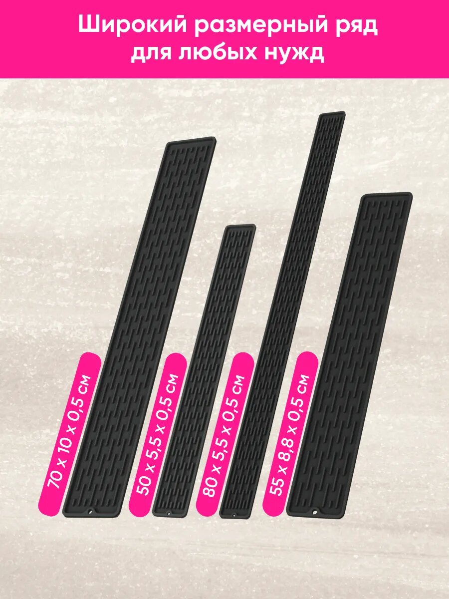 Коврик для раковины силиконовый от брызг, для разделочных досок, для сушки посуды, 70х10х0,5 см черный