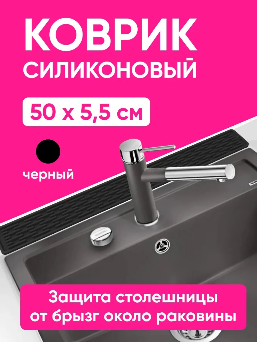 СохранитьКоврик для раковины на кухню, силиконовый, от брызг 50х5,5х0,5 см, черный интересное: