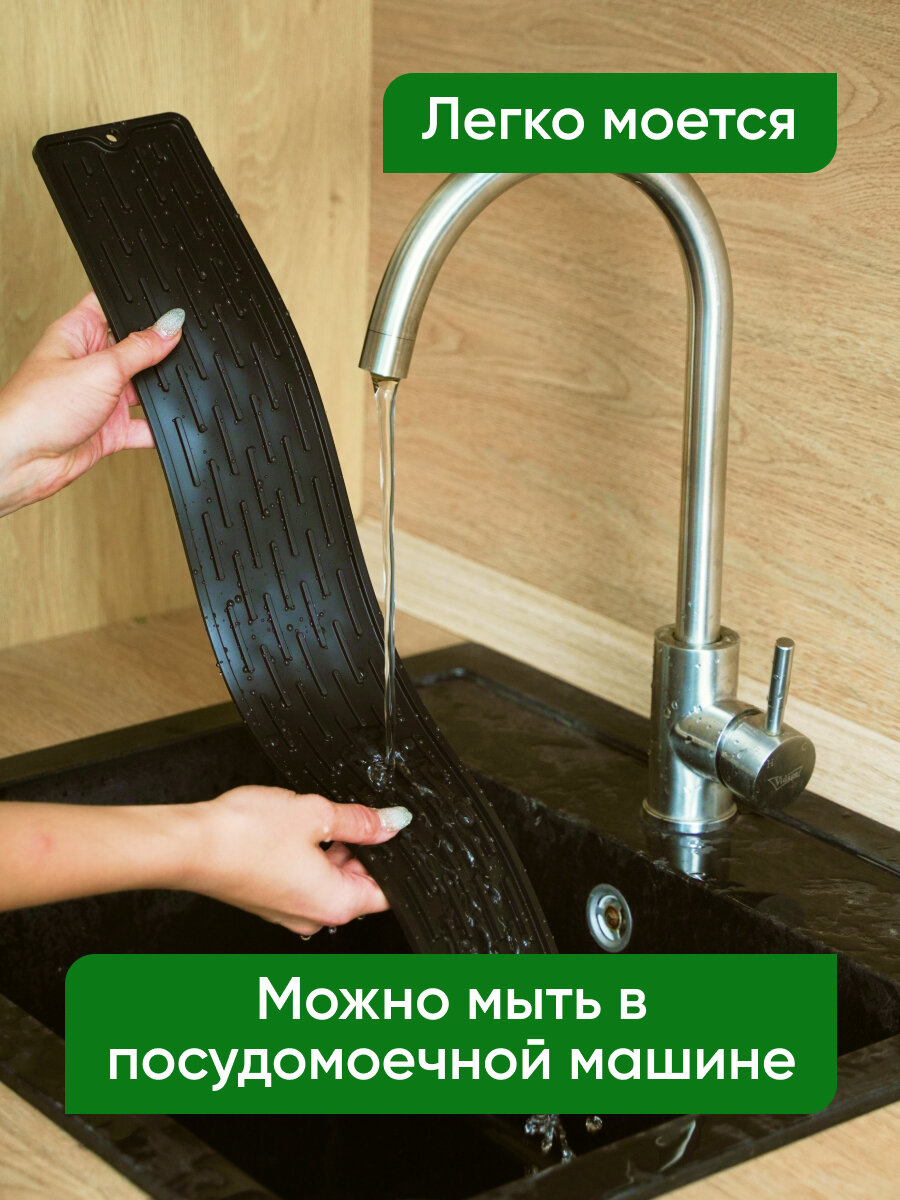 СохранитьКоврик силиконовый от брызг для раковины, для сушки посуды, 55х8,8х0,5 см, черный интересное:
